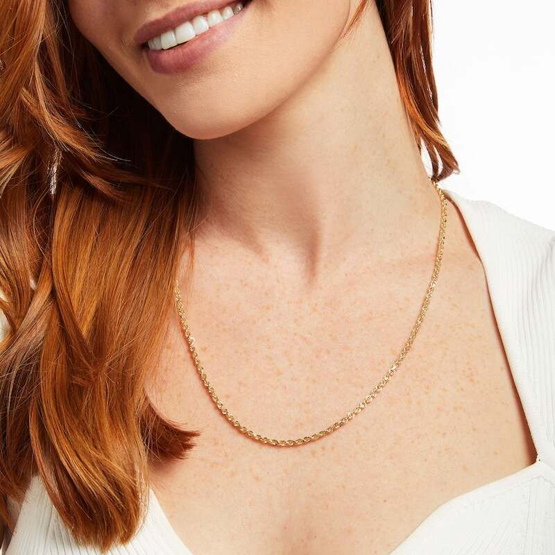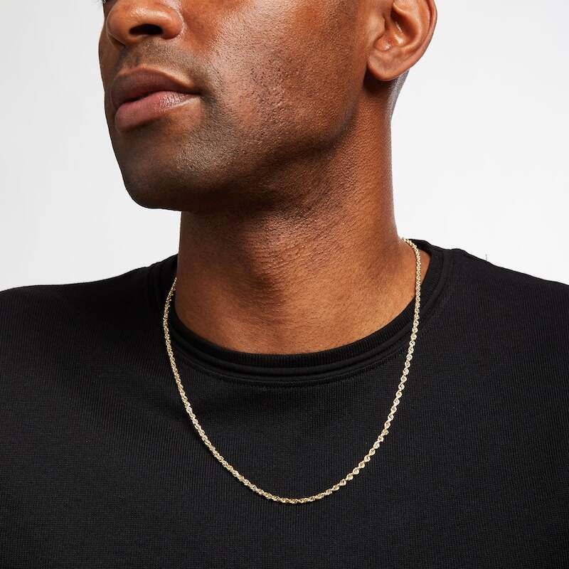 Always a classic, this rope chain is crafted in solid 10K yellow gold. The 22-inch 3mm chain secures with a lobster clasp.