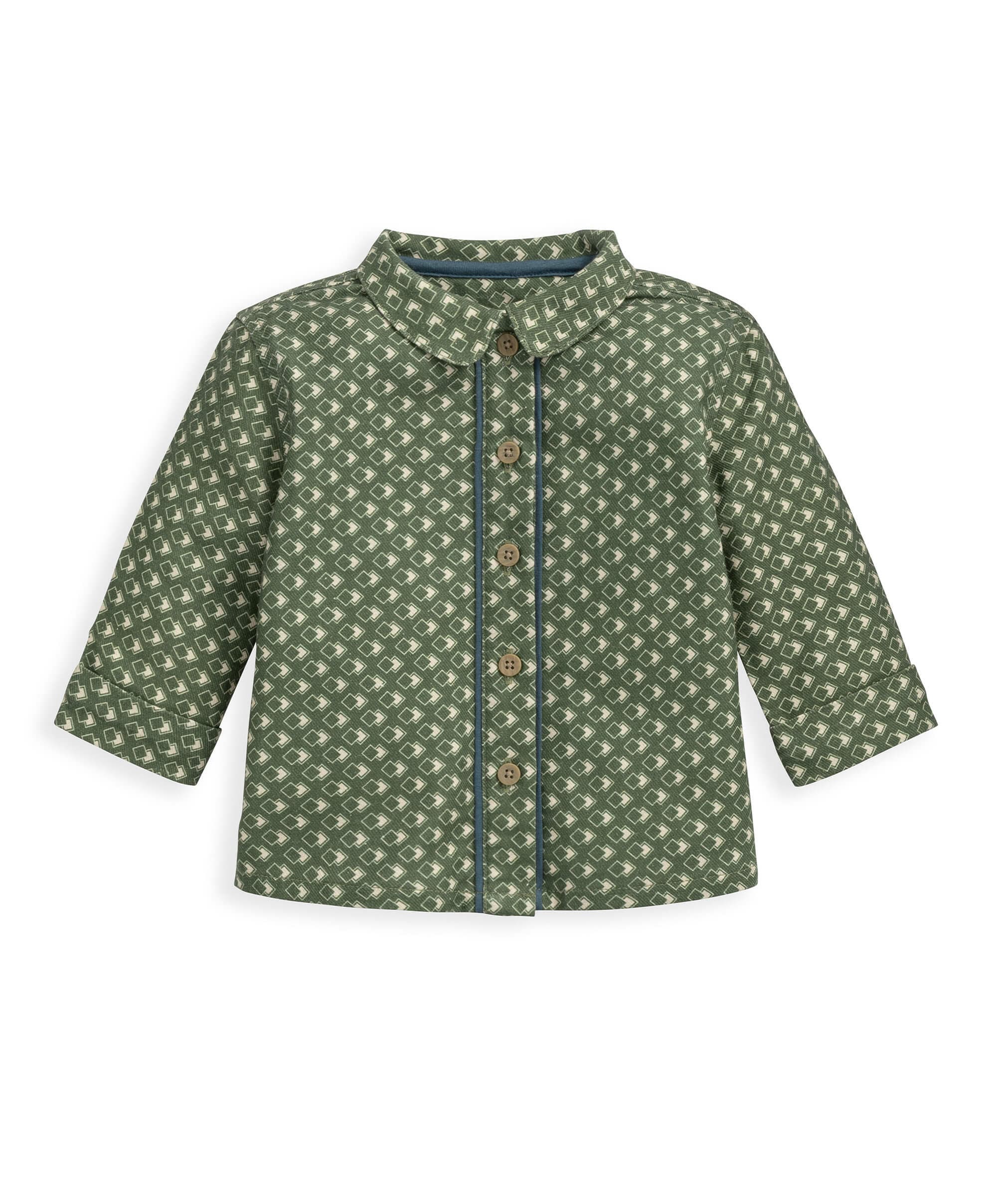 Shirt in Laura Ashley's Gethin print. With its mock wood button trim opening, retro-style rounded collar and smart turnback cuffs this dapper shirt is a great special occasion piece.