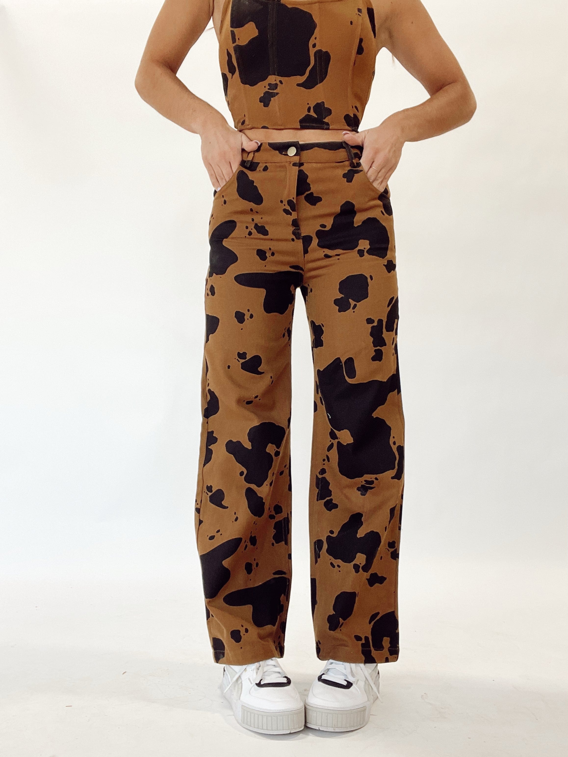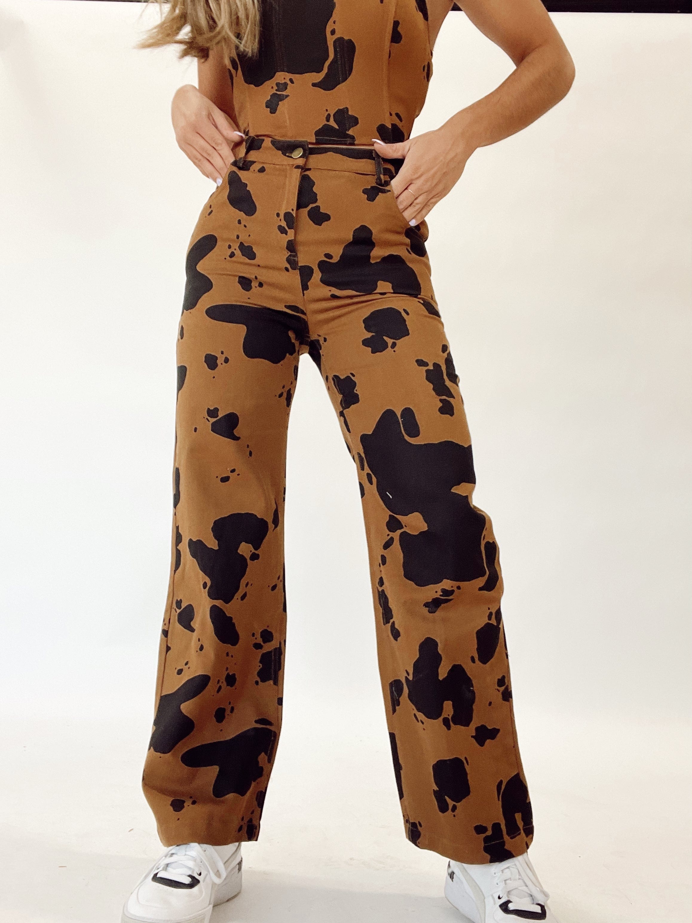 Get ready for your next wild ride out with the Lane 201 Step Into This Cow Print Pants! This trendy pair has a high-rise fit, wide pant legs, pockets, belt loops + a button closure. Shown styled with the matching Step Into This Corset Top.