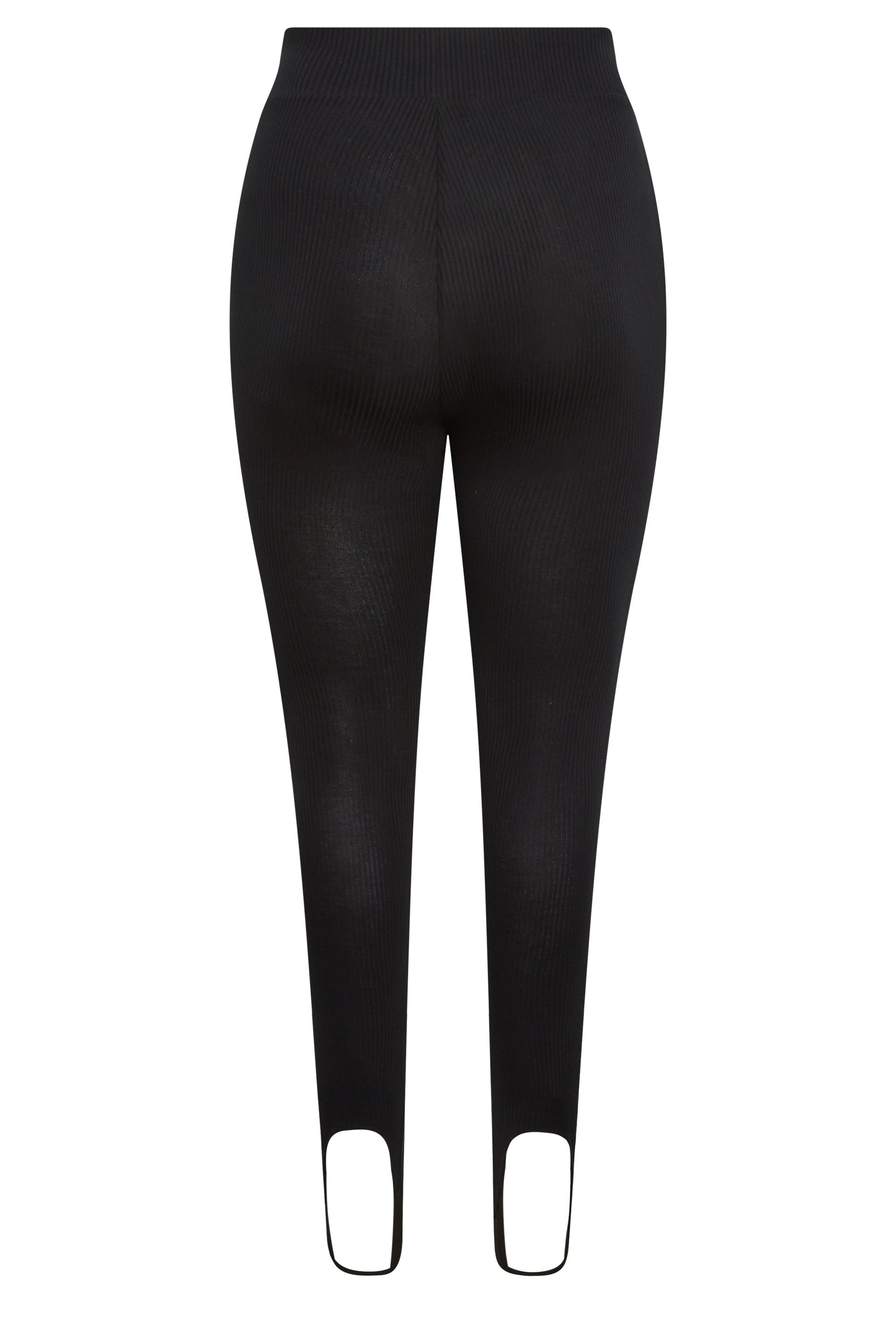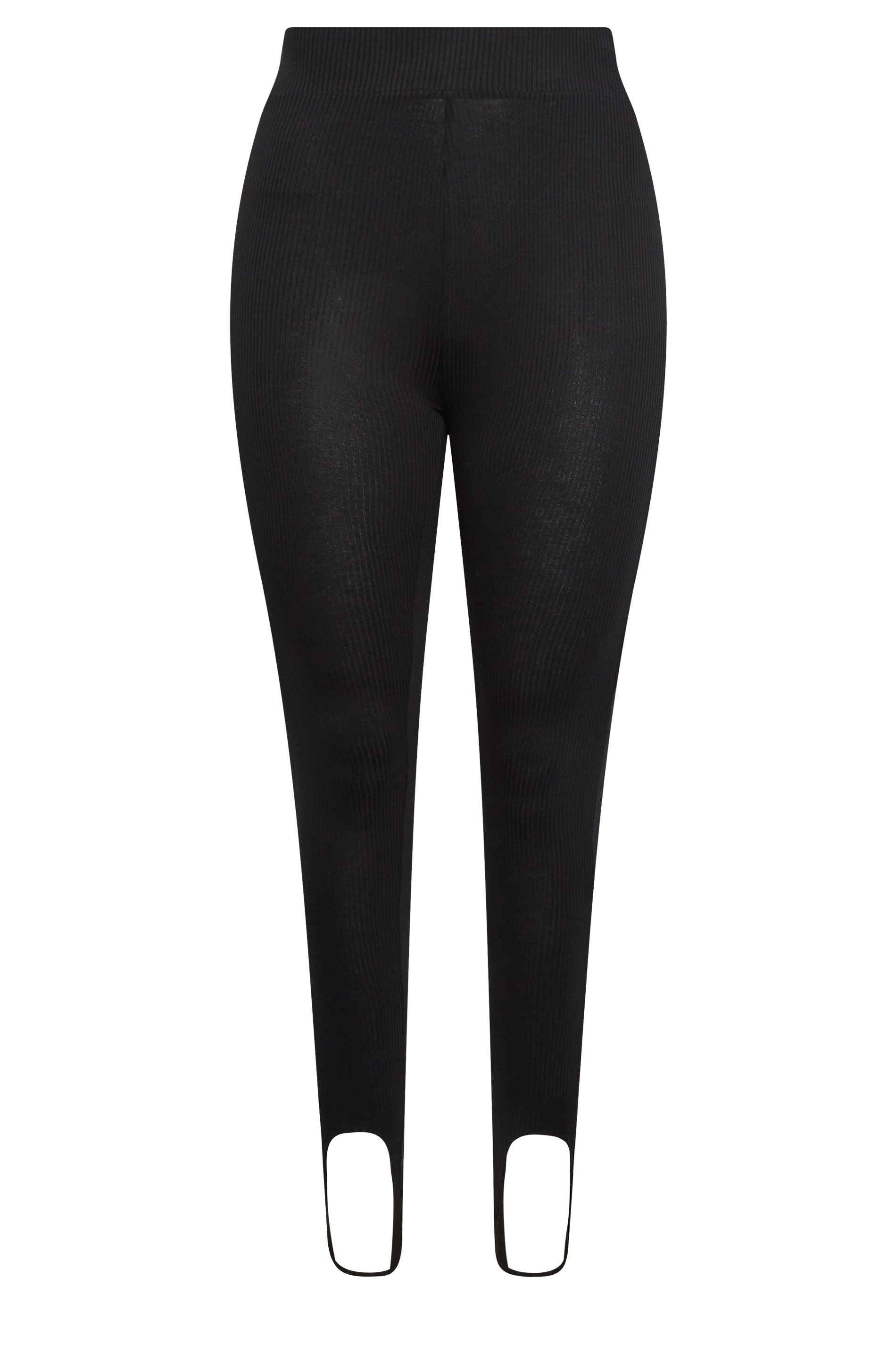 YOURS Curve Black Ribbed Stirrup Leggings 257305