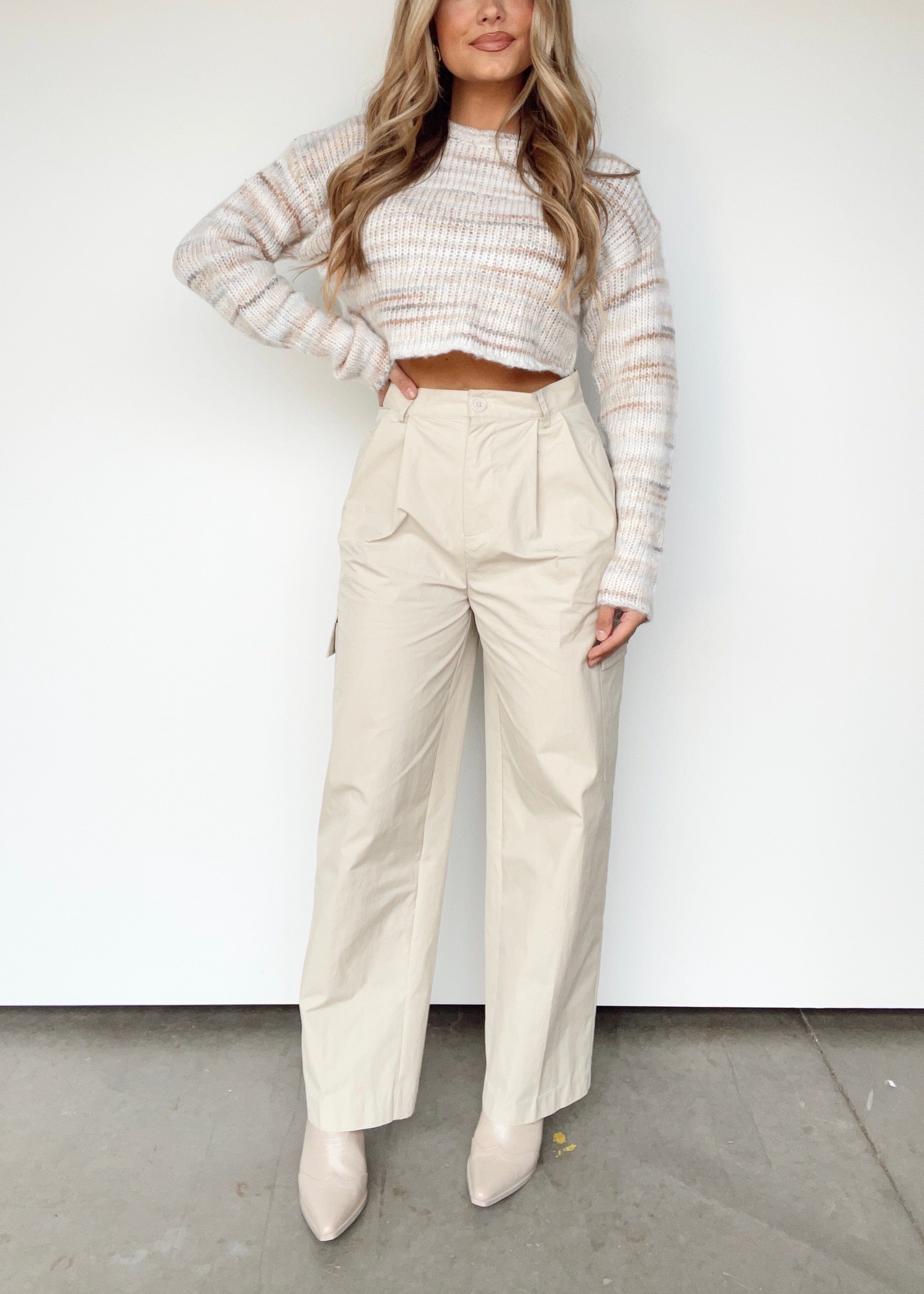Experience the utmost in luxurious refinement with our Strictly Confidential Pants. Meticulously crafted with pleated details and neutral hue for classic refinement, the straight leg design is the perfect combination of sophistication and comfort, ideal for business clothing or elevated workwear. Finished with a button and zipper closure and cargo pocket details, these pants exude class and elegance for a timeless, staple look.
