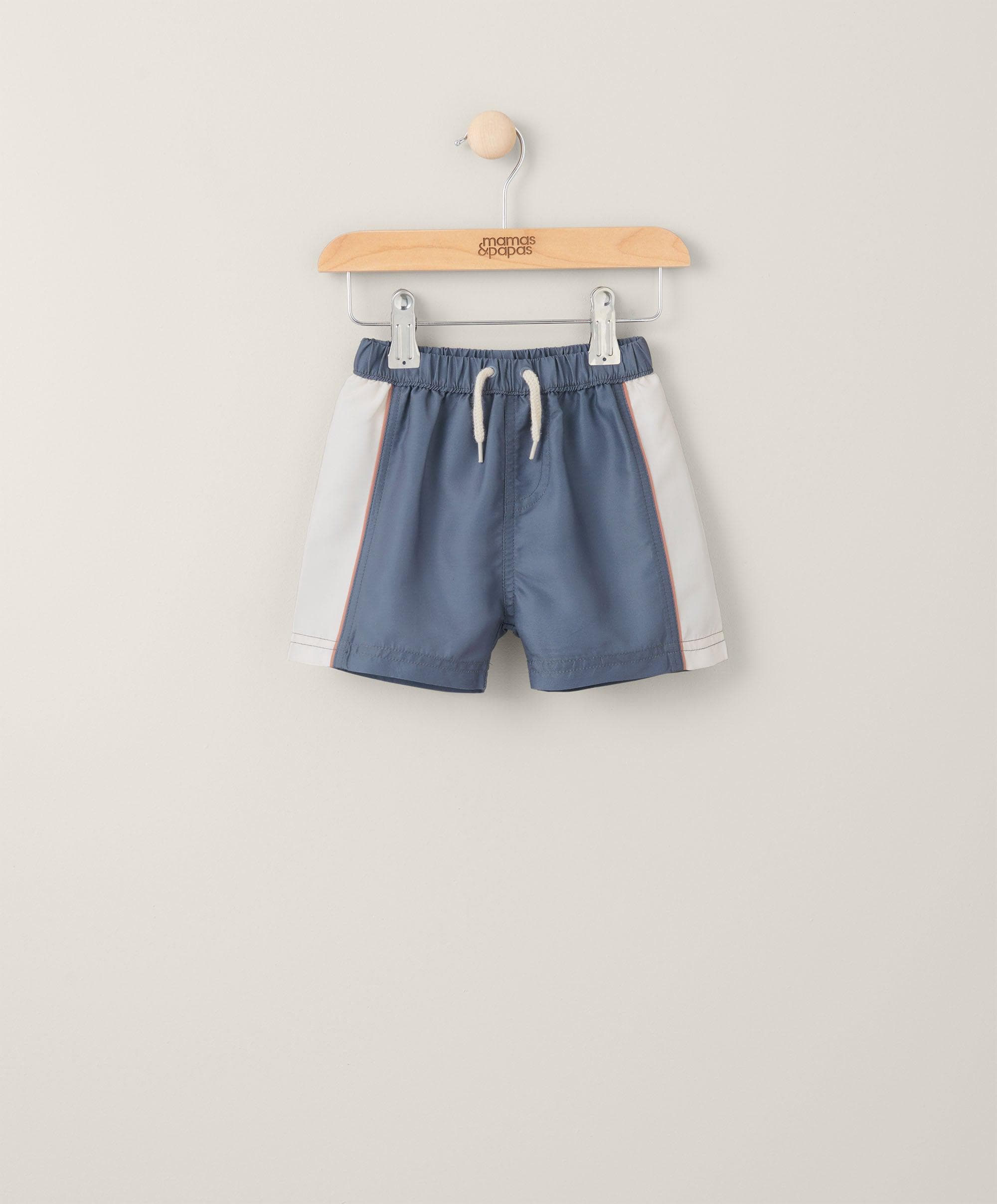 Boys' board shorts in block colour with side stripe panel. Fully lined. With elasticated waistband featuring eyelets and drawcord detail.