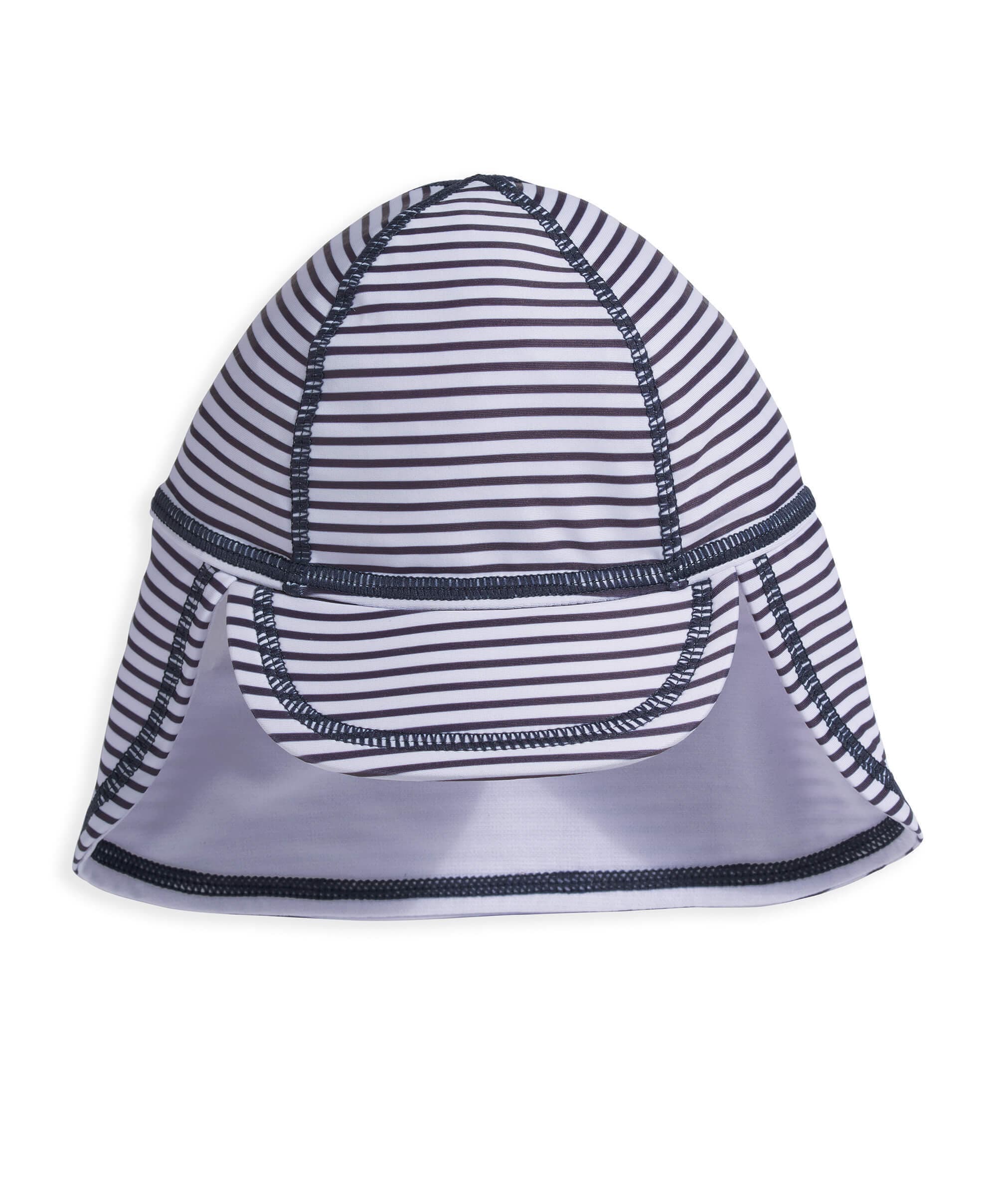 Protect their head and neck with this gorgeous nautical blue and white stripe swim hat. With Lining. We've added extra protection to the back, to protect the back of their neck too.