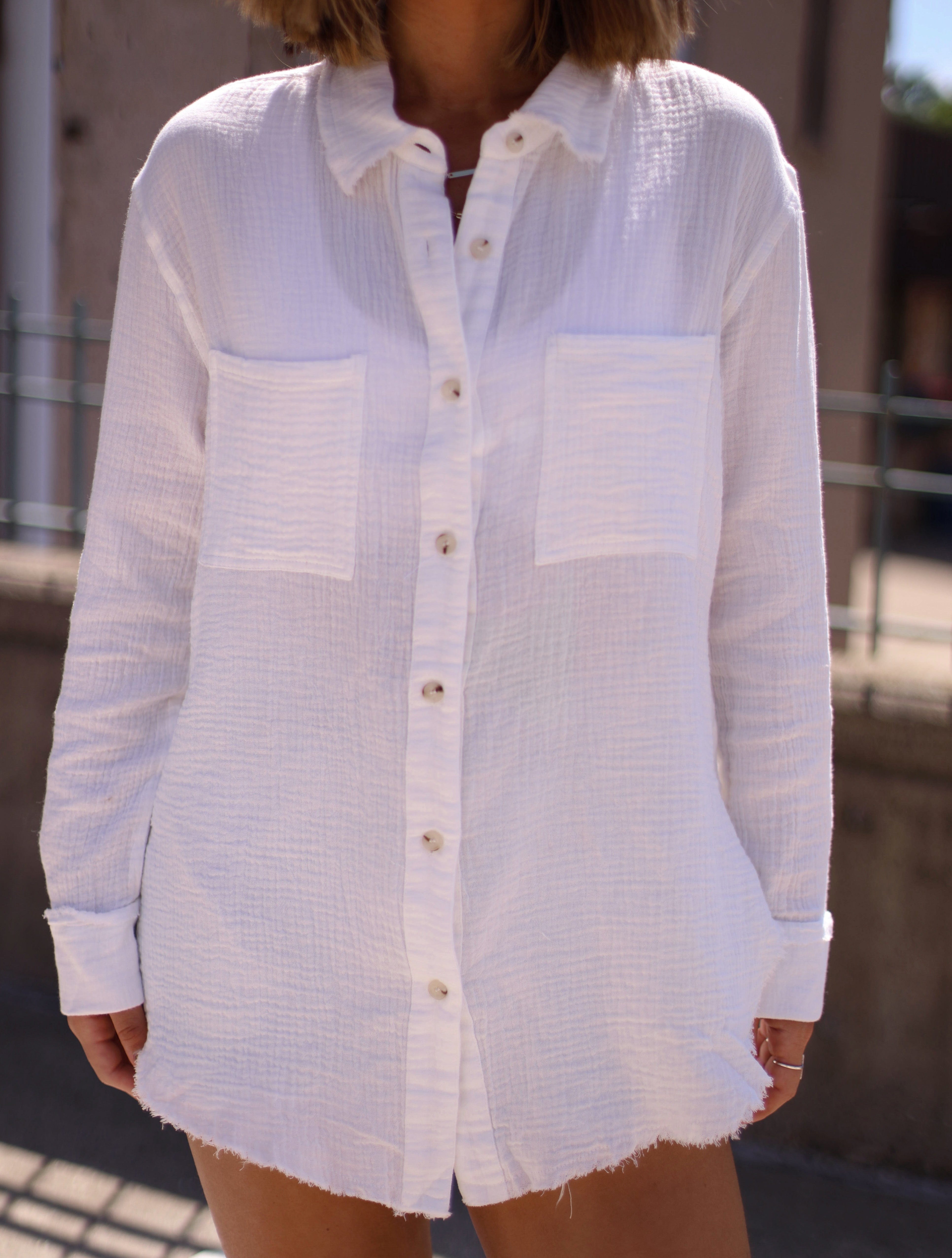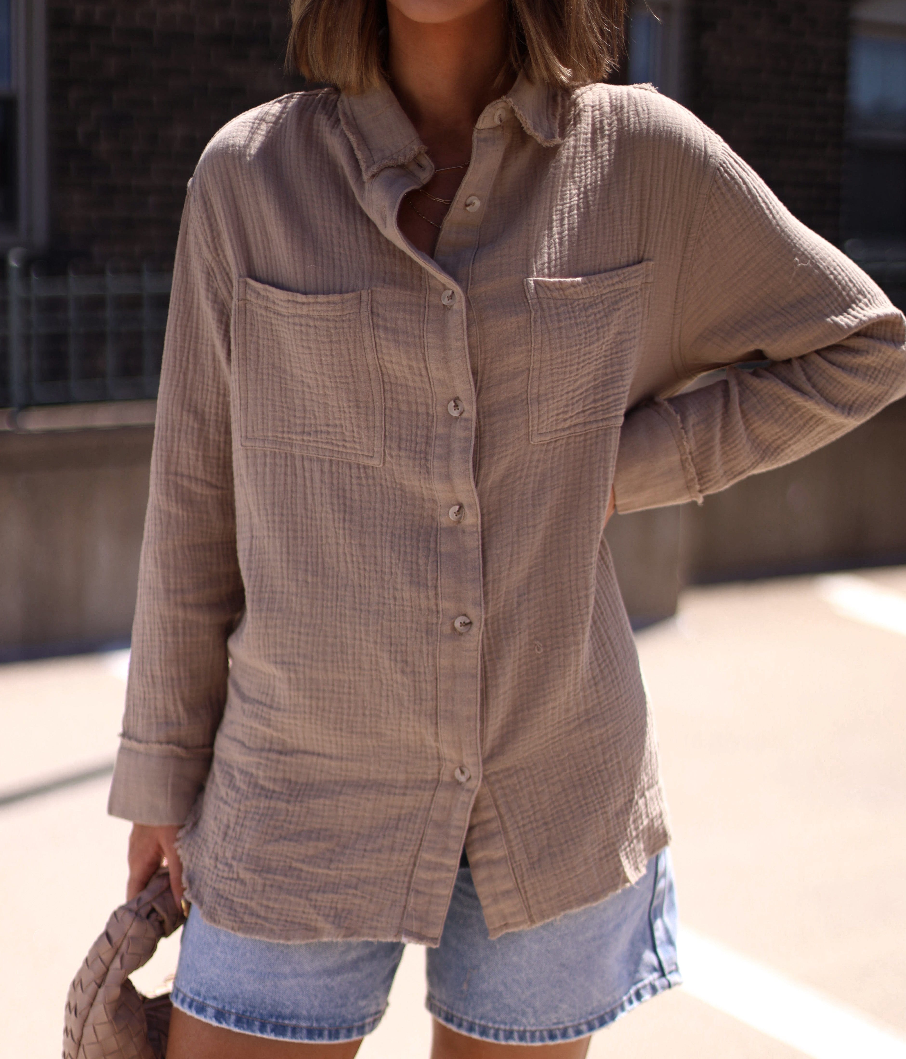 Elevate your wardrobe with our Sunlight Button Up. The collared design and button closures add a touch of sophistication, while the textured, lightweight fabric and oversized fit provide comfort and versatility. With a pop of color and rounded hem, this top brings a happy, trendy vibe perfect for spring and summer. Layer it for a casual look or make it the star of your outfit.