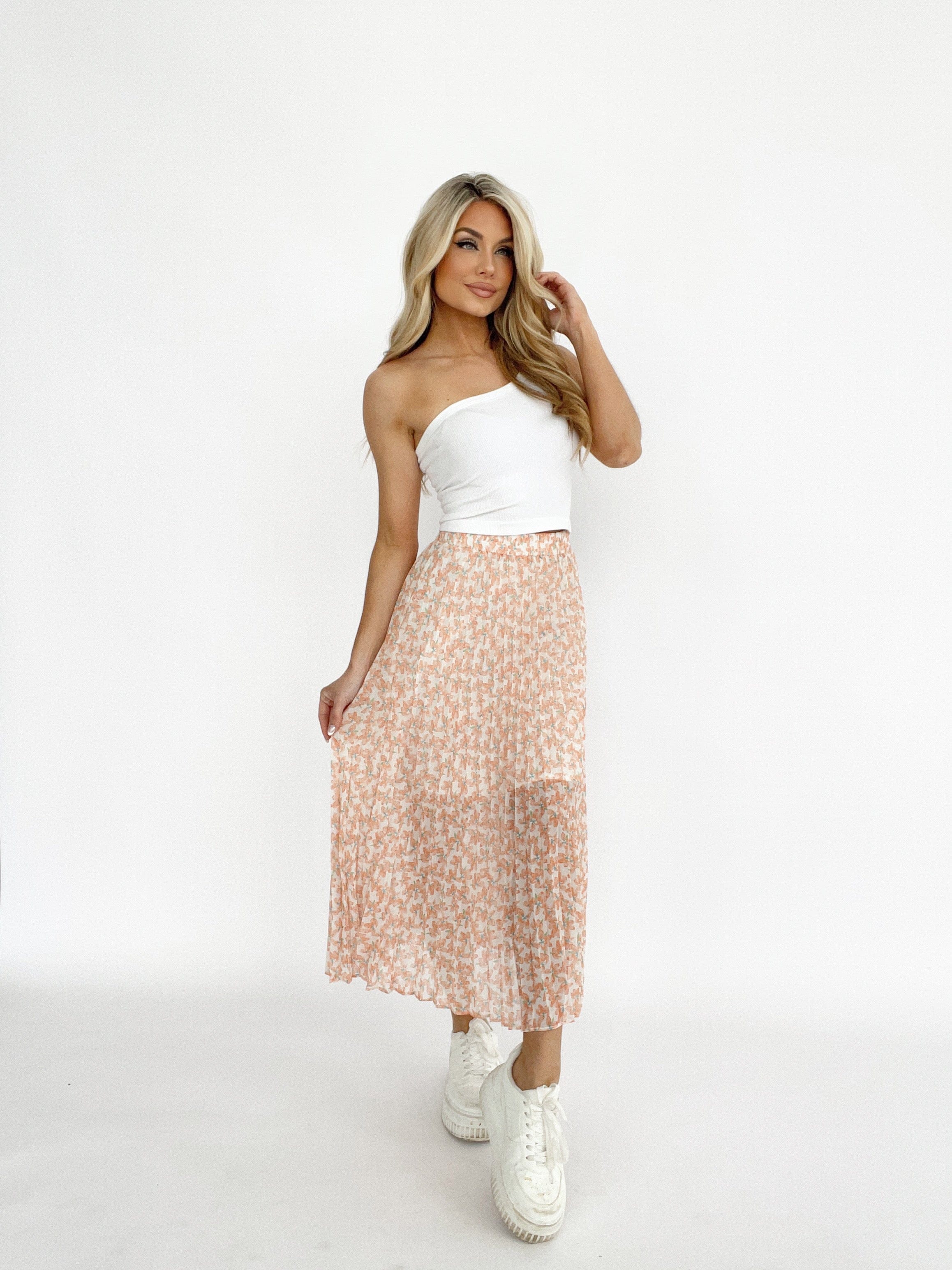 Introducing our Sweet Pea Floral Skirt, a versatile and elevated piece perfect for any occasion. The sheer floral overlay adds a touch of sweetness, while the soft inner lining and stretchy elastic waistband ensure comfort. Pleated and flowy with a high waist, this lightweight skirt is perfect for a brunch date or a fancy dinner. Embrace the spring/summer season in style with this elegant and sophisticated addition to your wardrobe.