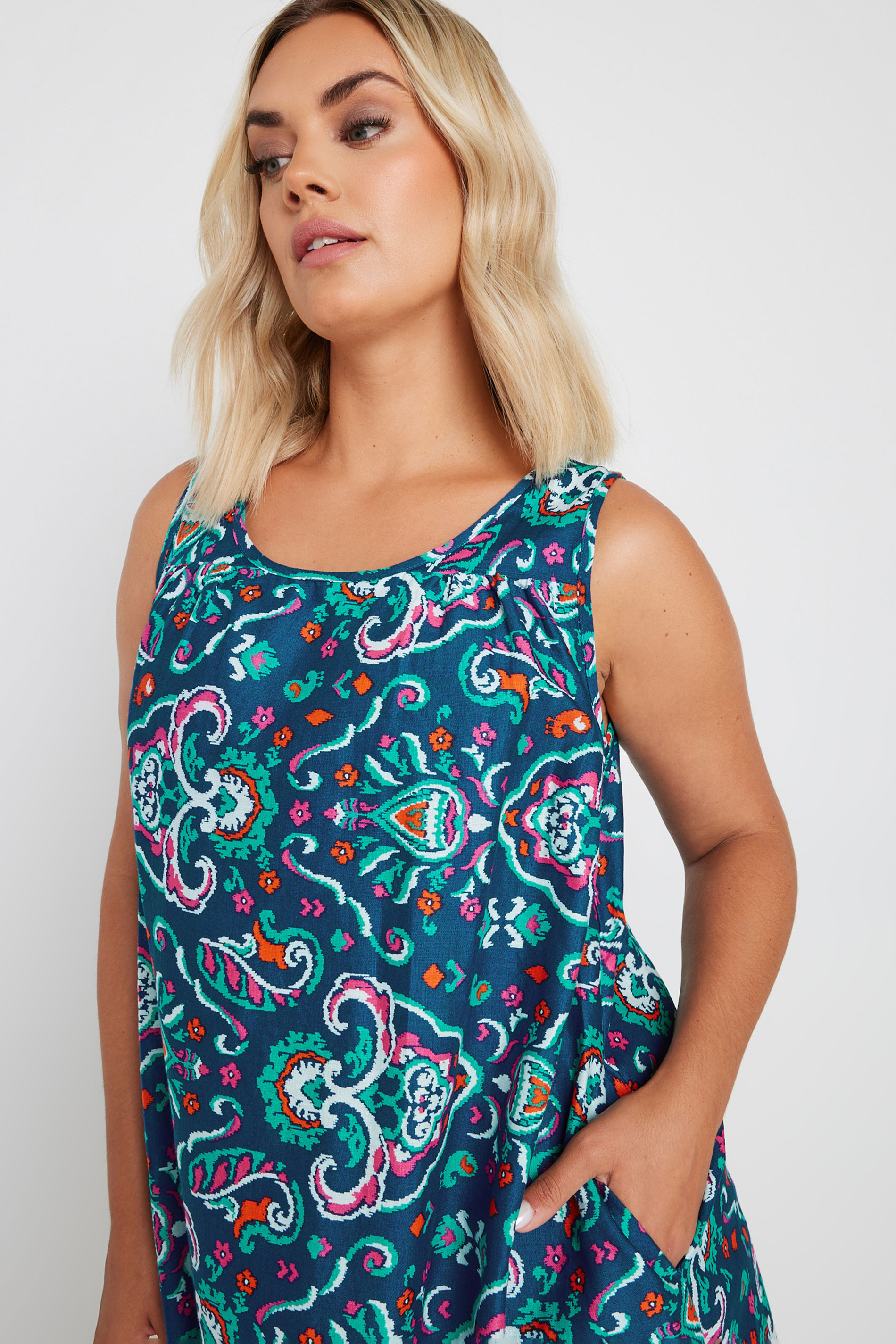 Give your summer wardrobe a refresh with this new-in swing dress! Made from 100% cotton for your comfort, this dress features a paisley print, a sleeveless design and two side pockets. Simply style with sandals and sunglasses for a warm-weather look you'll be reaching for all season long.