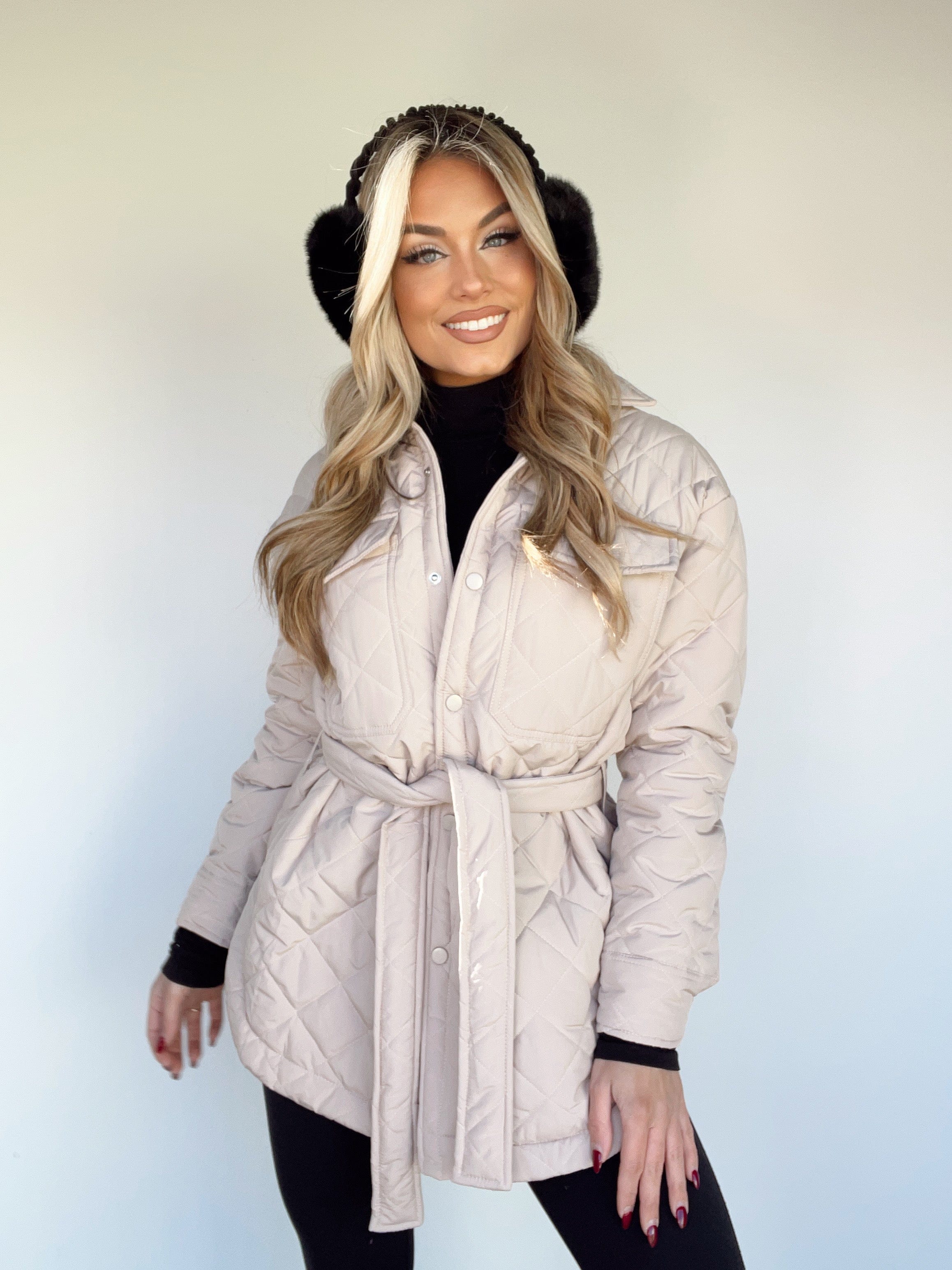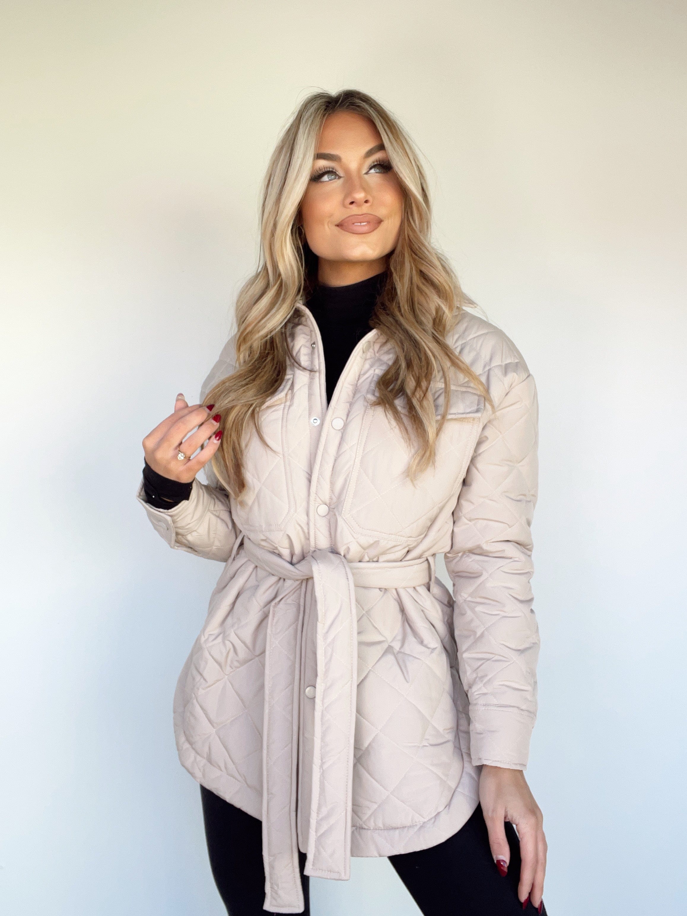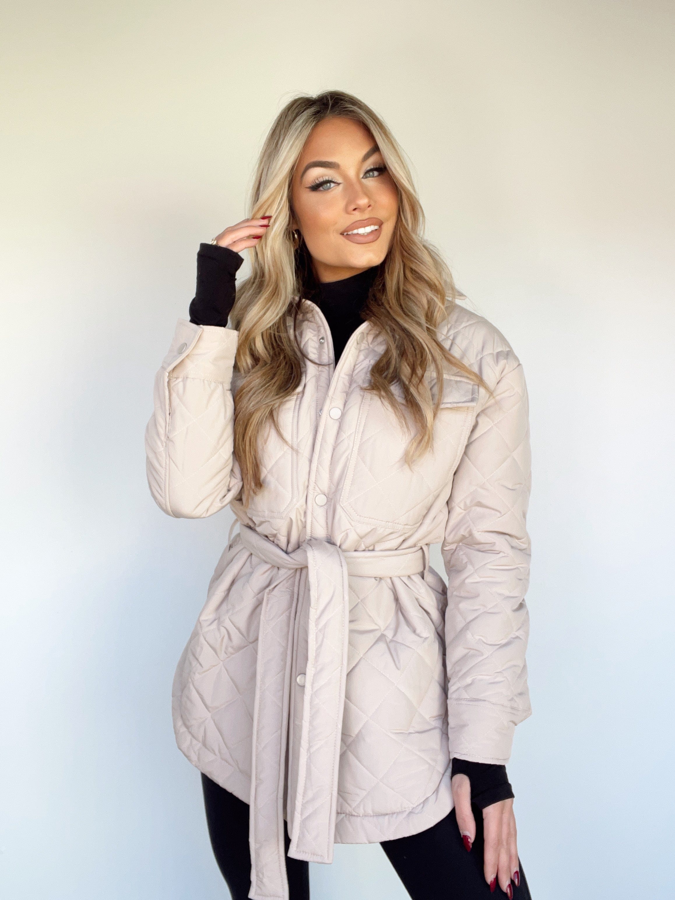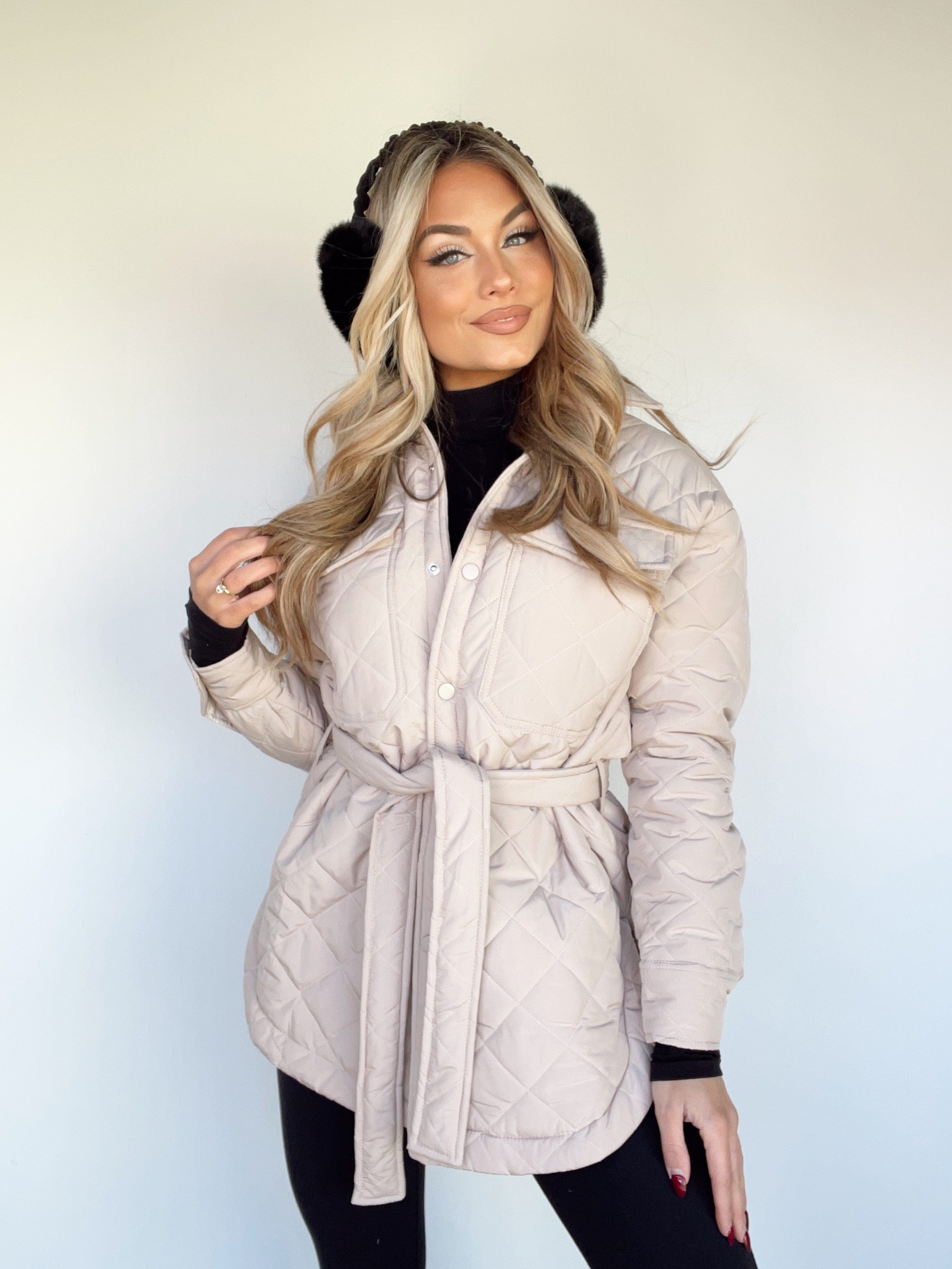 This Swiss Alps Jacket is a luxurious piece of outerwear. The khaki design is padded and belted to keep you warm and stylish regardless of the season. Crafted with a subtle quilted pattern, it perfects any look with effortless sophistication.