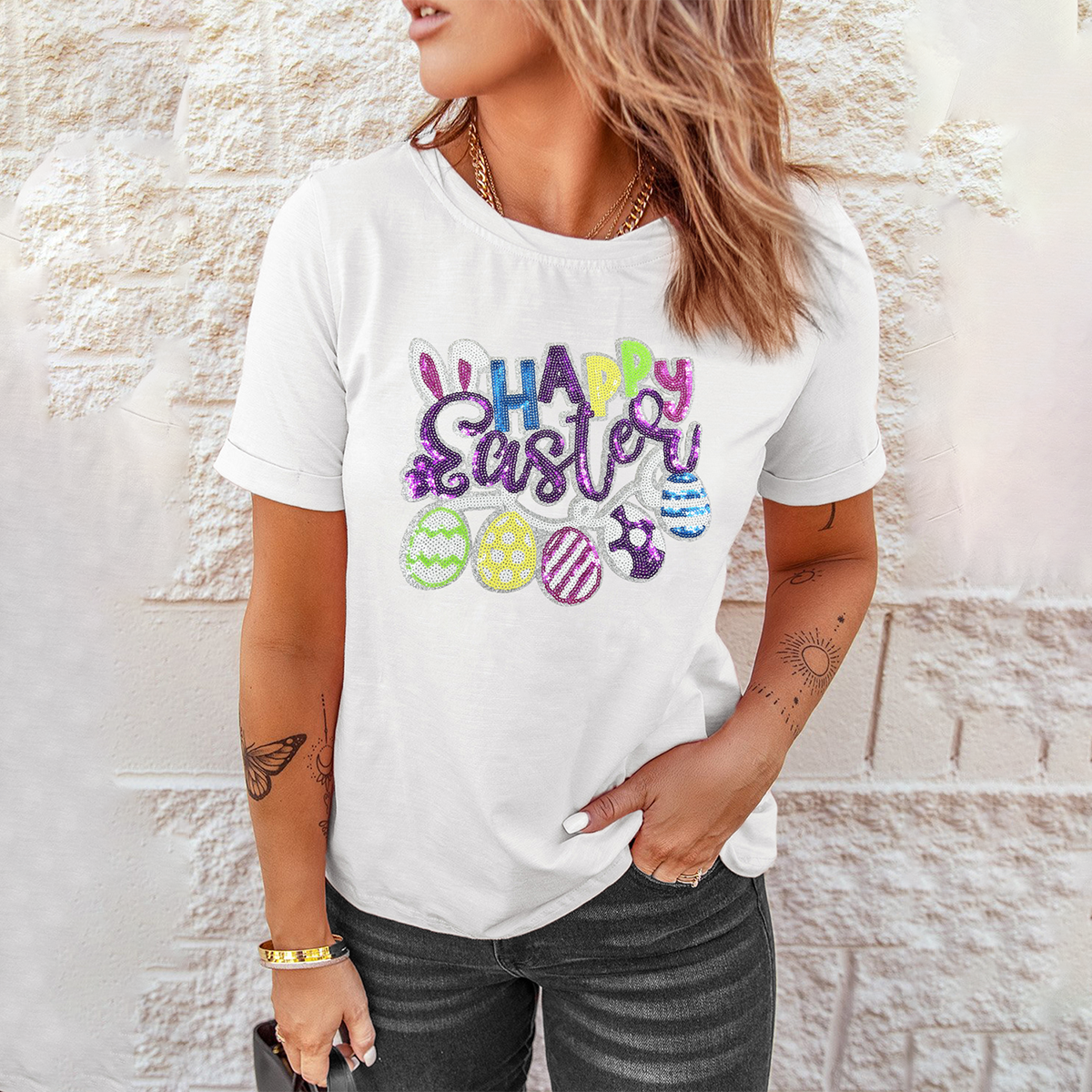 T-shirt Happy Easter Women Printed Round Neck Short Sleeve