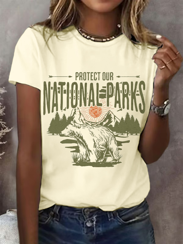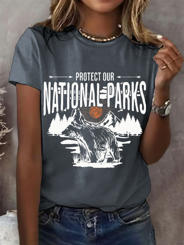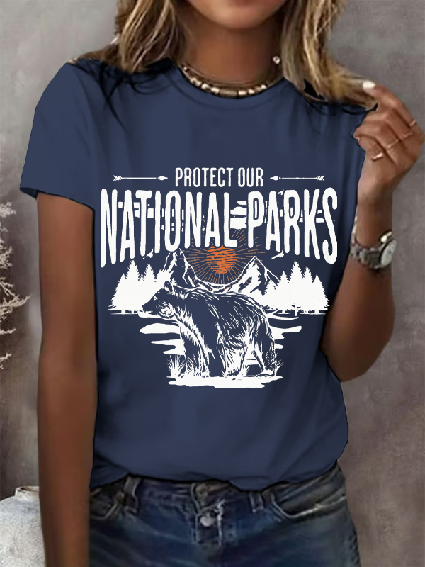 T-Shirt Women Protect Our National Parks Printed Crew-Neck T-Shirt Theme Printed Short Sleeve