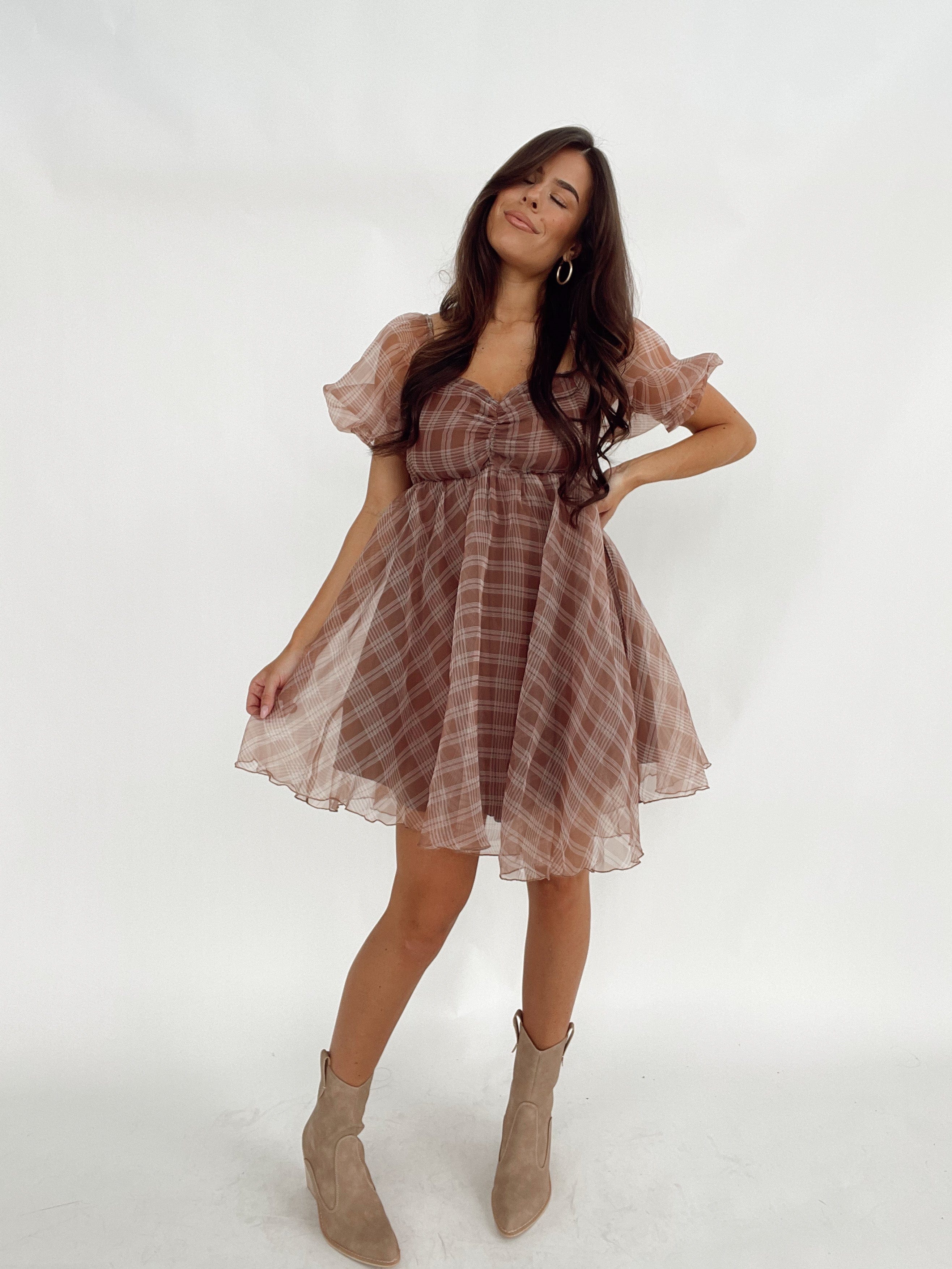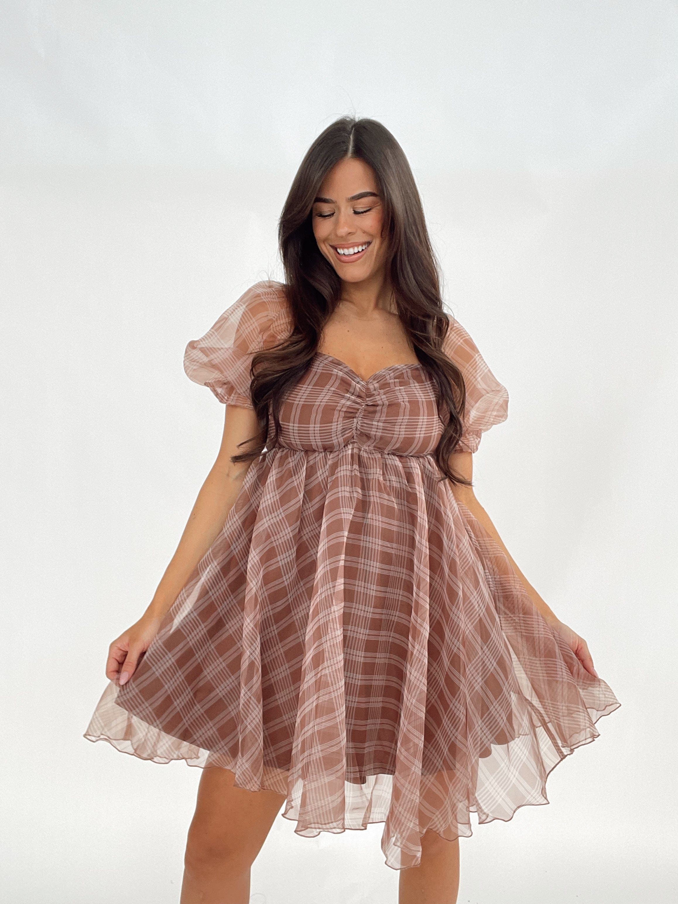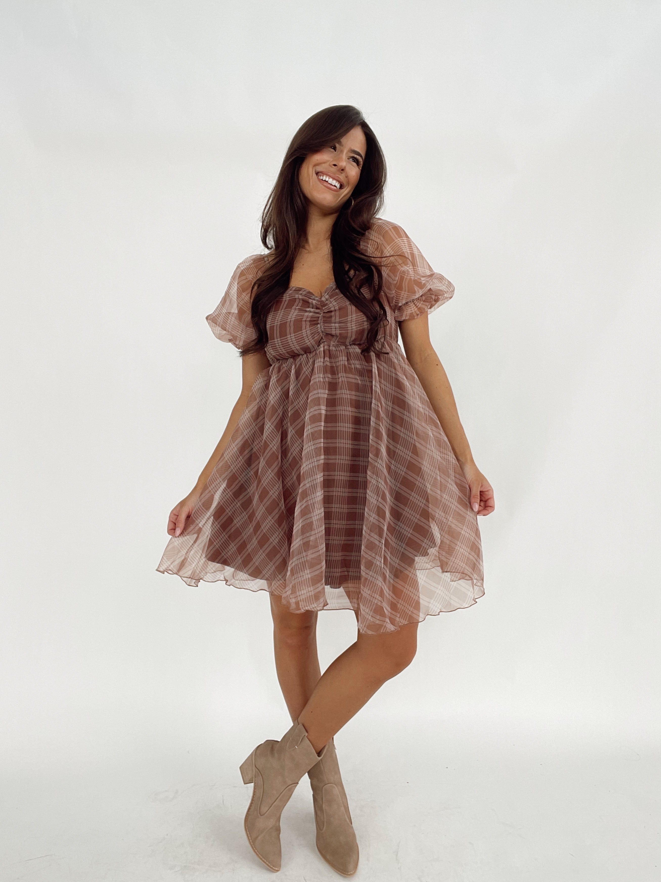 Our Thankful For You Dress features elastic in the bust for a comfortable fit, with a light inner lining for added coverage. The puff sleeves add a touch of whimsy, while the mini length keeps you on-trend. Perfect for any occasion, this dress is both stylish and practical.