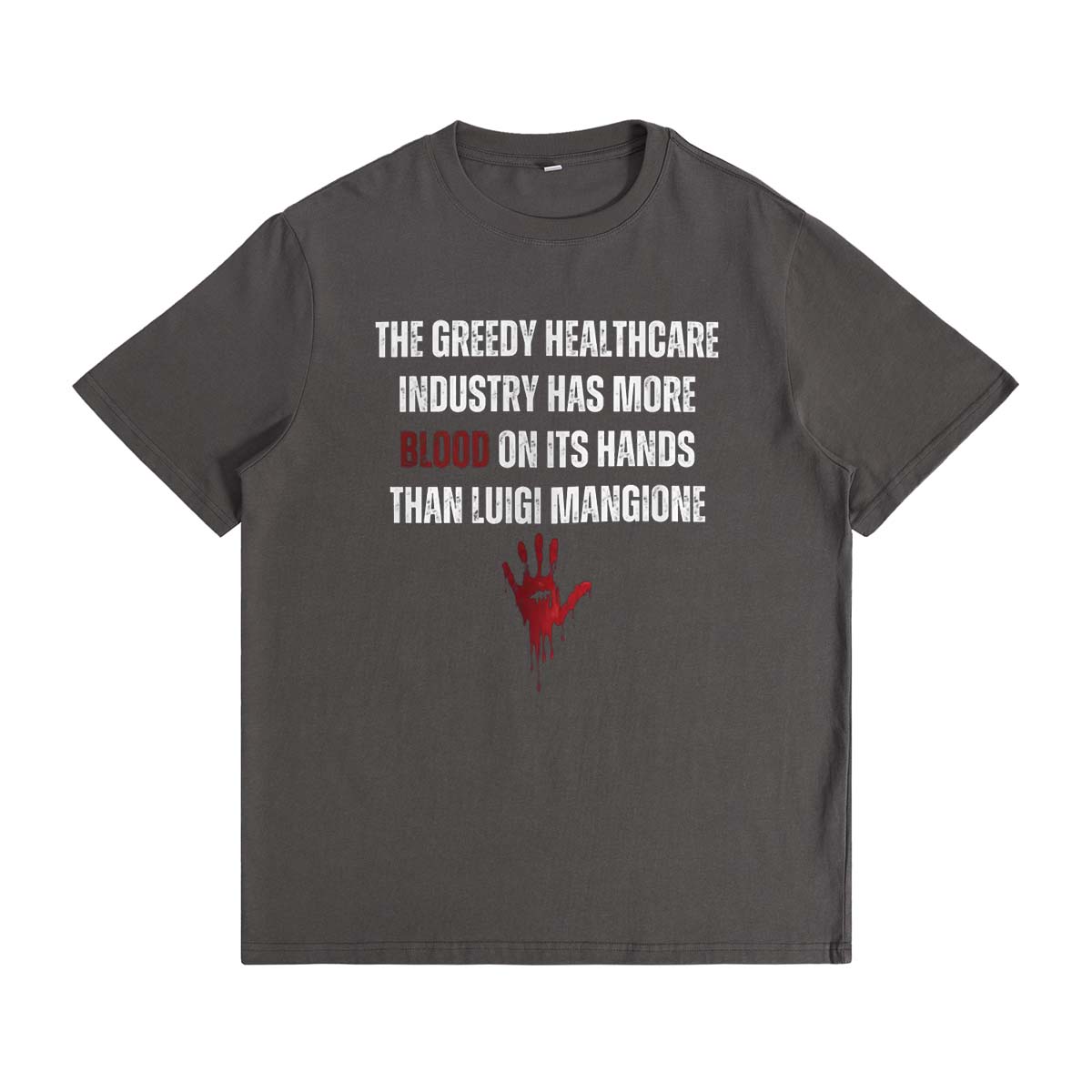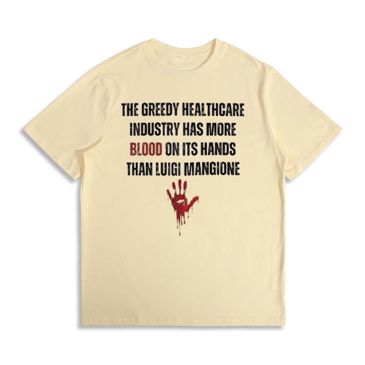 The Greedy Healthcare Industry Has More Blood On Its Hands Than Luigi Mangione T-shirt 9521796