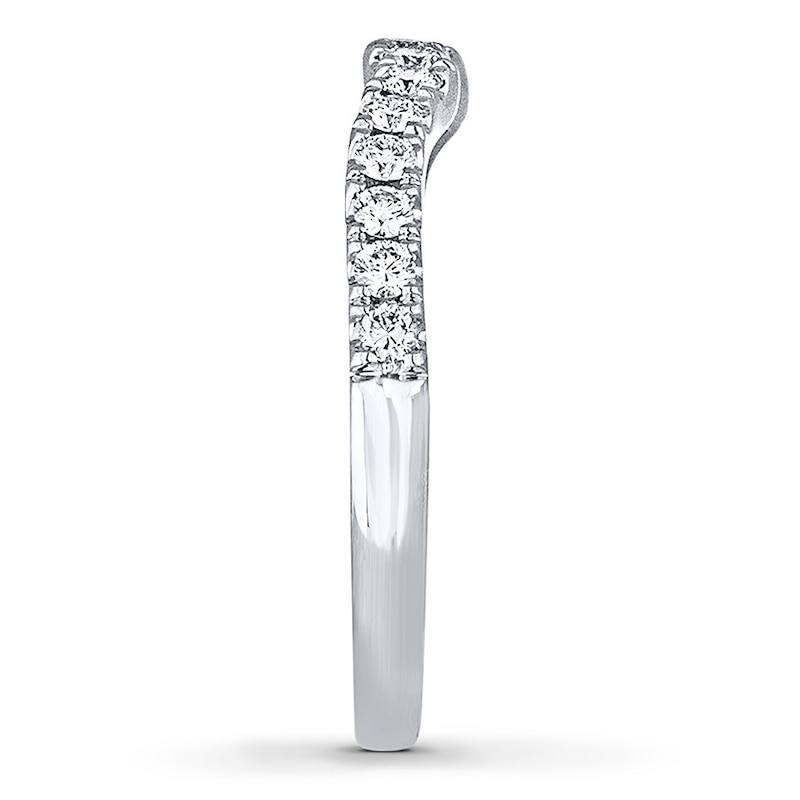 Round diamonds adorn this gorgeous 14K white gold THE LEO Diamond? wedding band, gently contoured to fit alongside her matching engagement ring (sold separately). The ring has a total diamond weight of 3/8 carat.