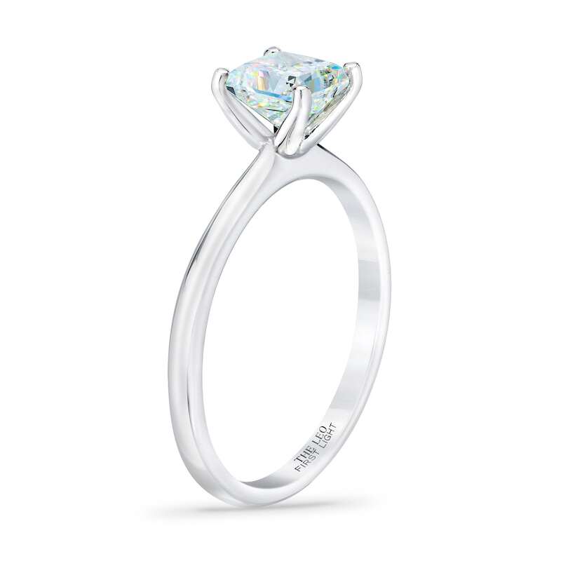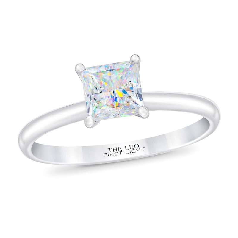 A breathtaking 1-carat princess-cut First Light? diamond is the center of attention in this timeless engagement ring for her. From Leo Schachter, the independently-certified diamond features Fire Prism? technology that creates infinite flashes of color for more fire and sparkle. The ring is crafted in iconic 14K white gold for a classic look. The center diamond is laser-inscribed with a unique Gemscribe? serial number to ensure your peace of mind. Live Your Love in Color.?