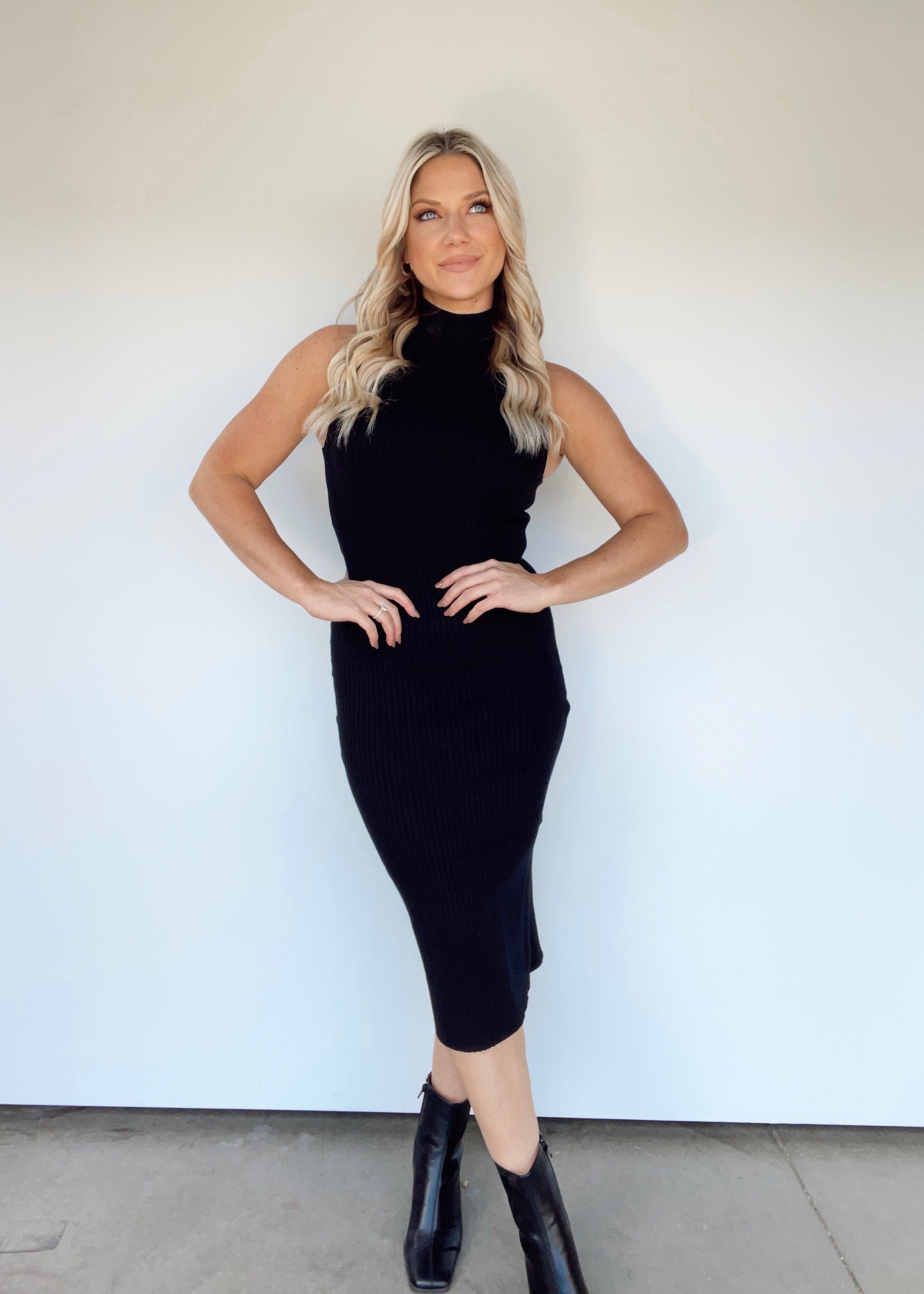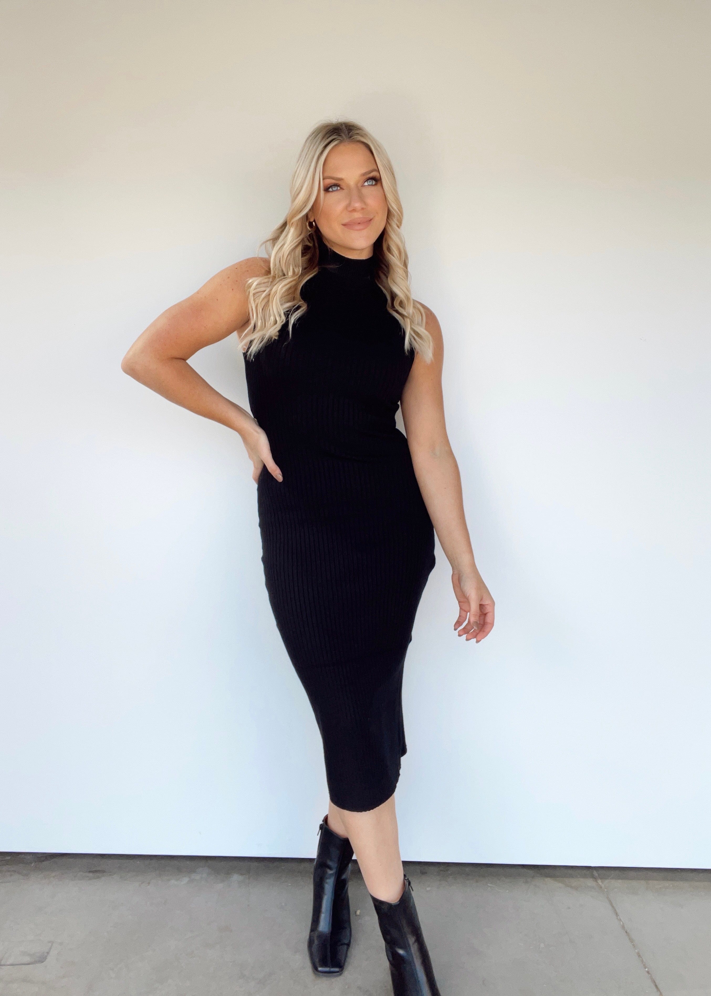 This ribbed sweater knit dress will create timeless memories with its soft and stretchy construction. Featuring a mock neck and sleeveless silhouette, the midi fit dress exudes comfort and style. Take you look from day to night with its versatile and elegant design that is perfect for drinks and dinner. With its chic and classy design, this dress is a must-have for fall!
