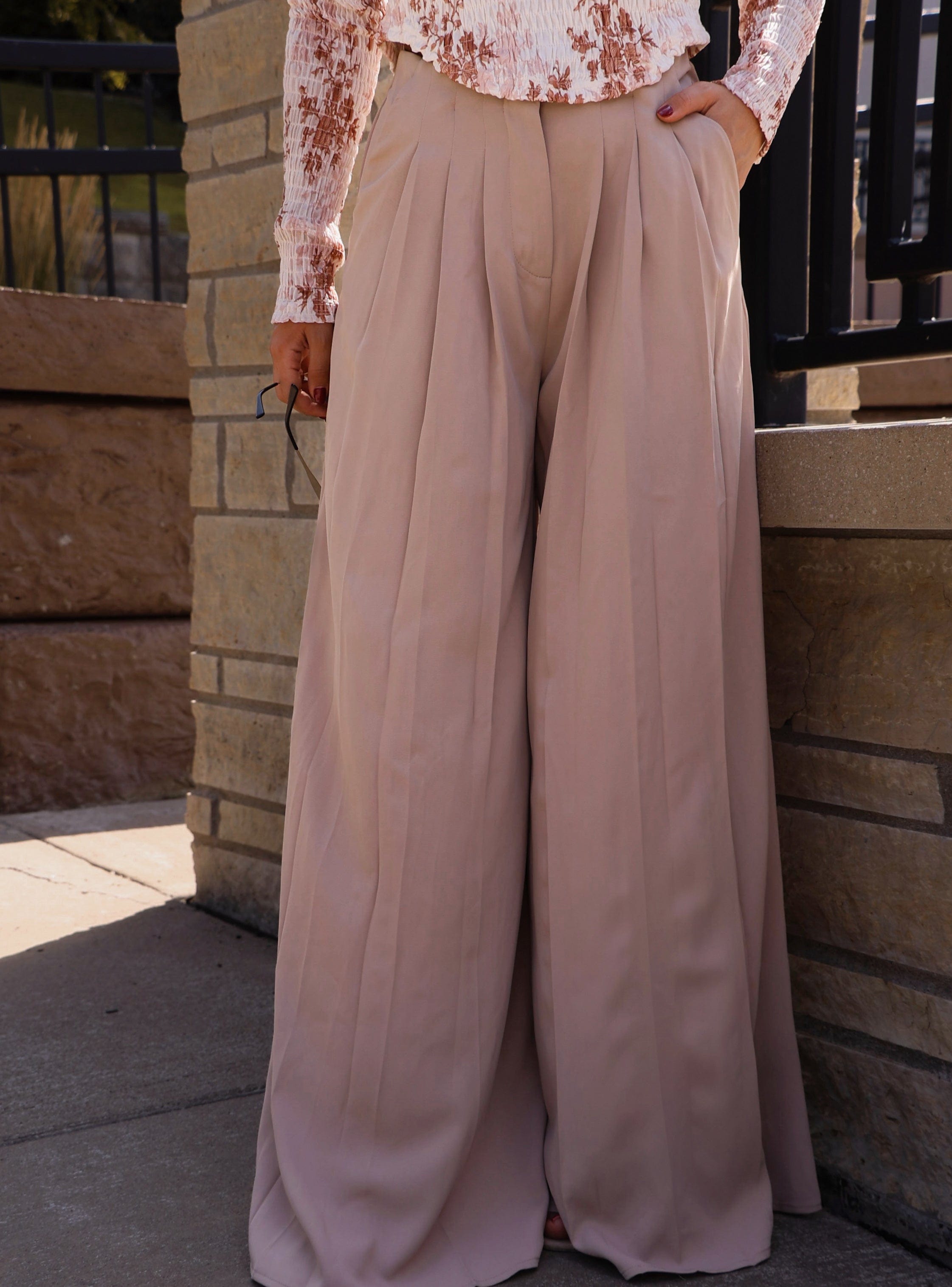 These Toffee Pleated Pants feature a flattering high-waisted design and wide leg that exudes a chic and polished look. The pleated details add texture and dimension, making them a versatile option that can be dressed up or down for any occasion. Stay stylish and comfortable in these must-have pants.