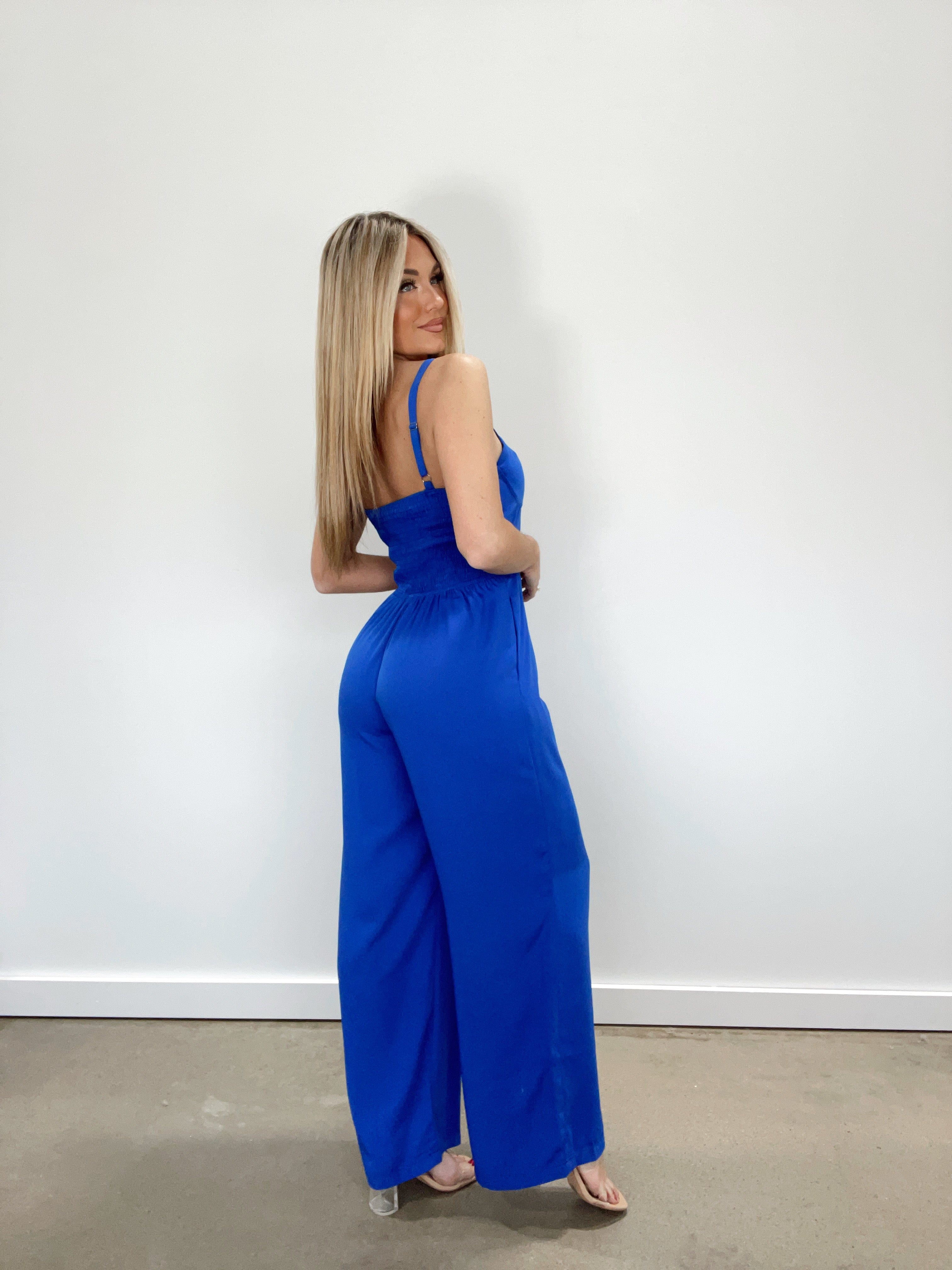 Make a lasting impression in our True Desire Jumpsuit – a piece that perfectly balances stylish elegance and comfort. This exquisite ensemble features thin, adjustable straps, a stretchy smocked back panel, a classic bustier, pleats, pockets, and a wide leg. Soft and flowy, it will become your go-to for special occasions and everyday moments alike.