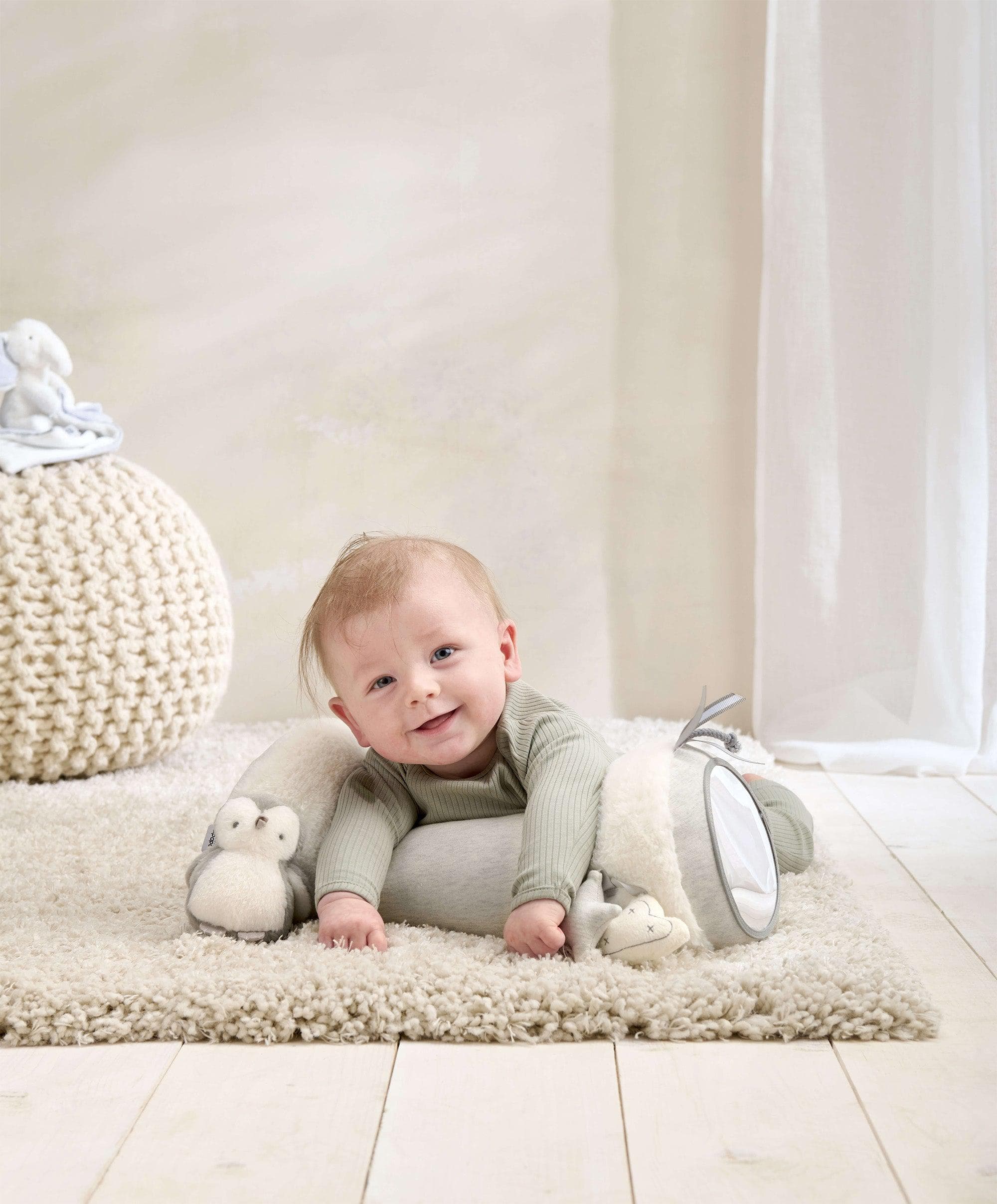 - Soft tube shape perfect for propping baby up on their arms, to encourage them to move their head.