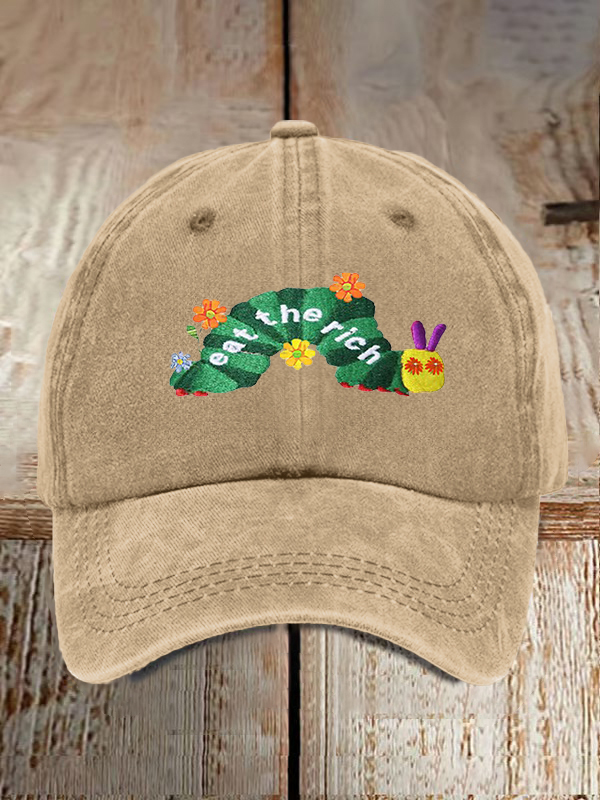 Unisex Distressed Washed Cotton Eat The Rich Print Hat