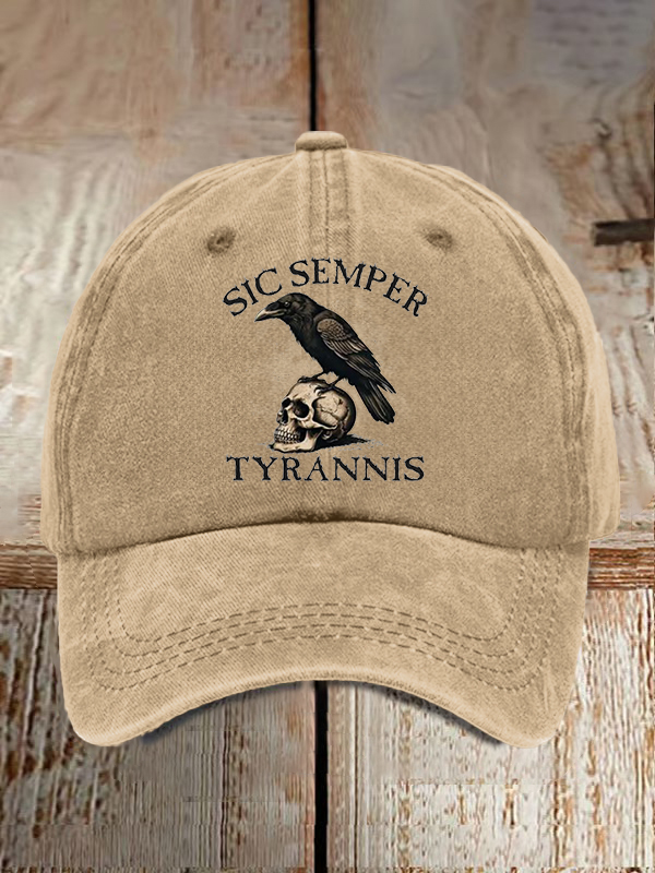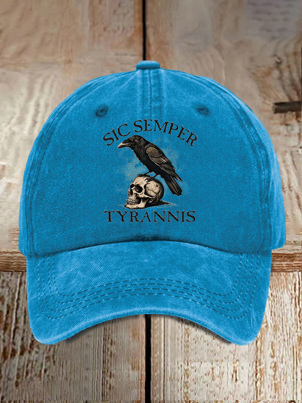 Unisex Distressed Washed Cotton Sic Semper Tyrannis Print Hat