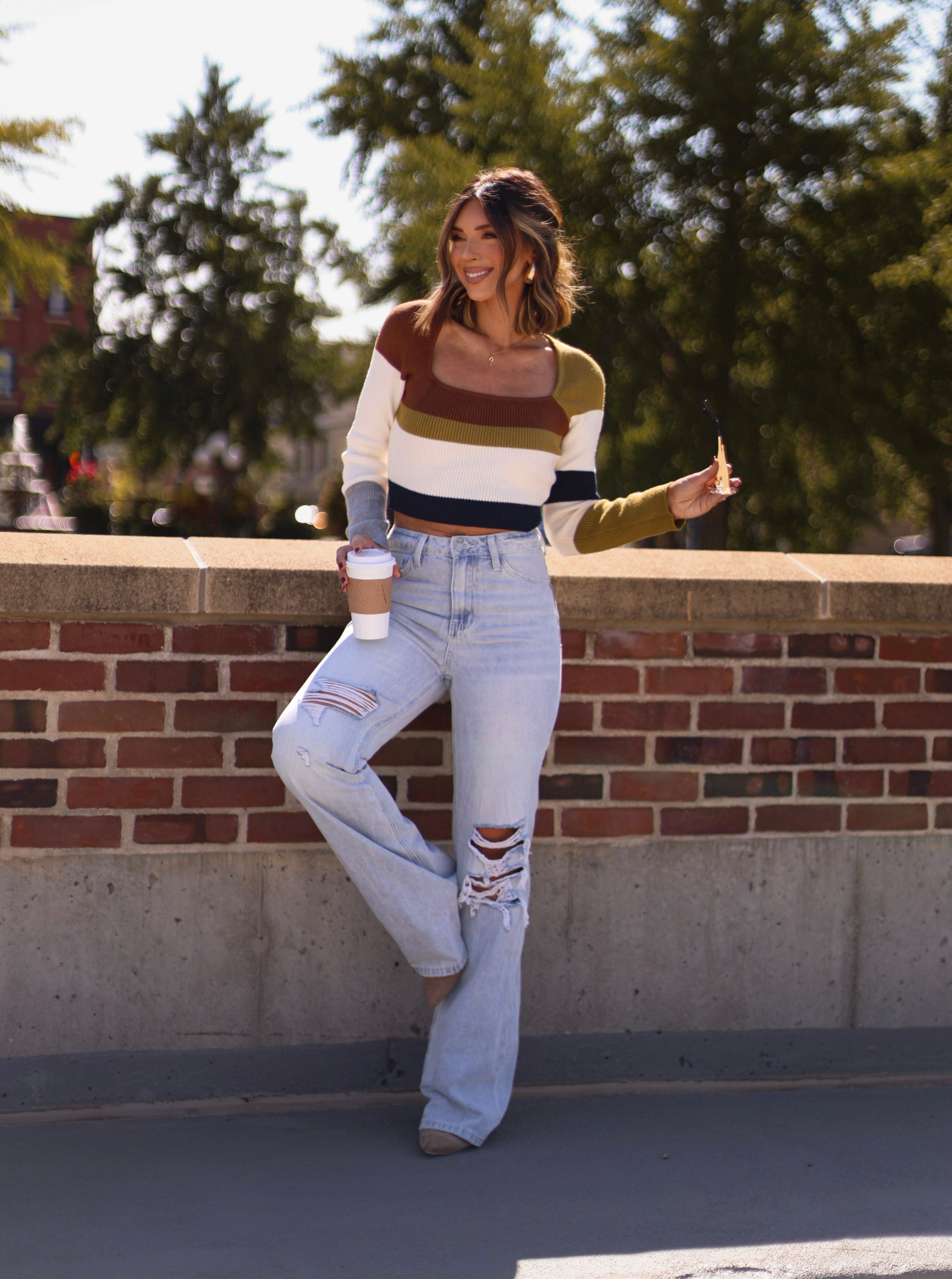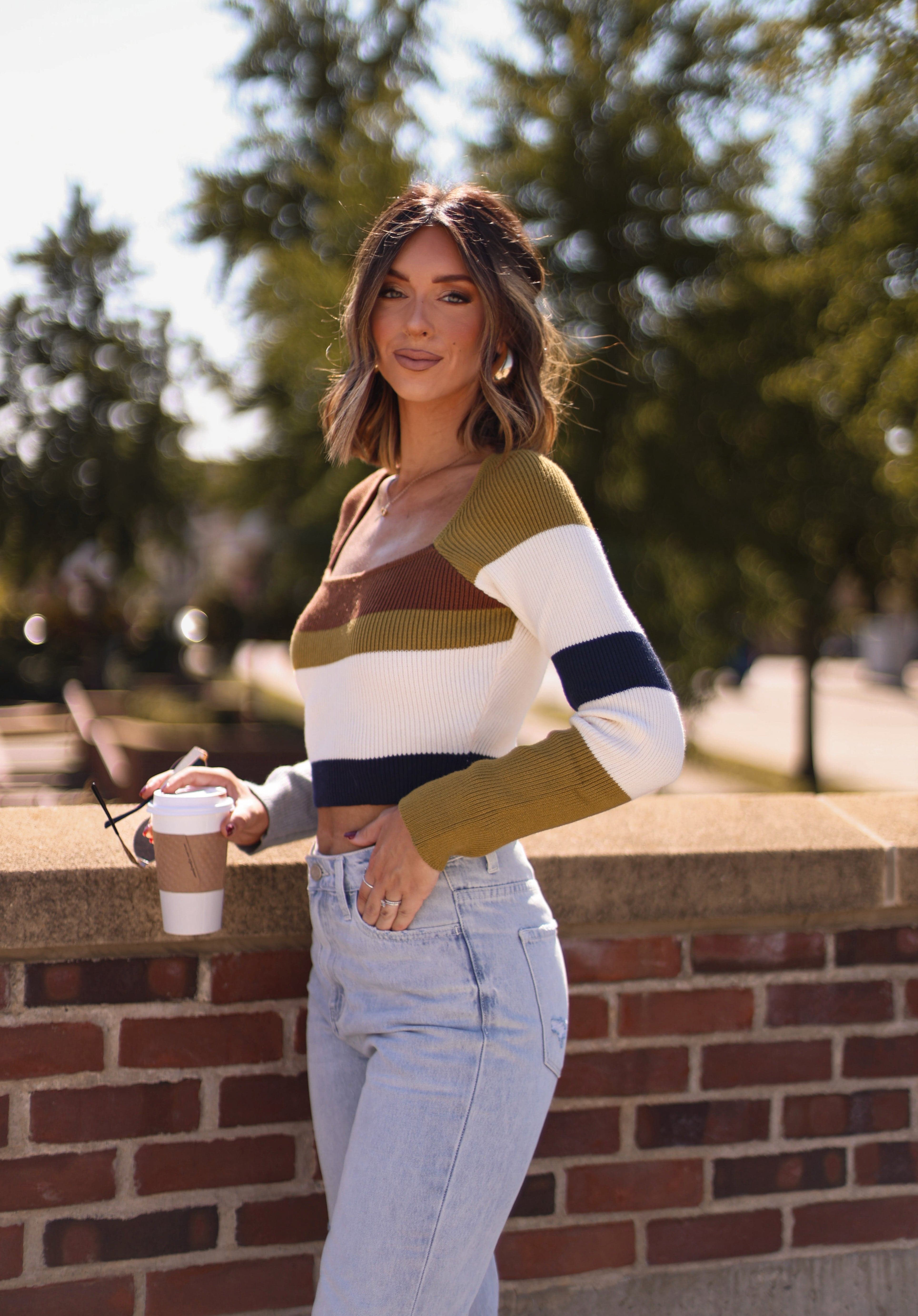 Introducing the Uptown Striped Sweater - a trendsetting addition to any wardrobe and perfect for any sophisticated occasion. Crafted with ultra-soft and stretchy fabric, this cropped square-neckline design features stylish stripes that are sure to make you stand out. Perfect for drinks with the girls or dinner dates, you'll be sure to look and feel your best in this chic knit.