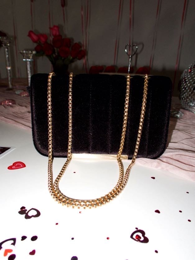 Elevate your evening looks with our Velvet Chain Shoulder Bag. The gold chain strap adds a touch of class to the compact velvet design, making it the perfect accessory for formal occasions, trendy dinners, or romantic galas. Make a chic statement this Valentine's Day and accessorize in style.