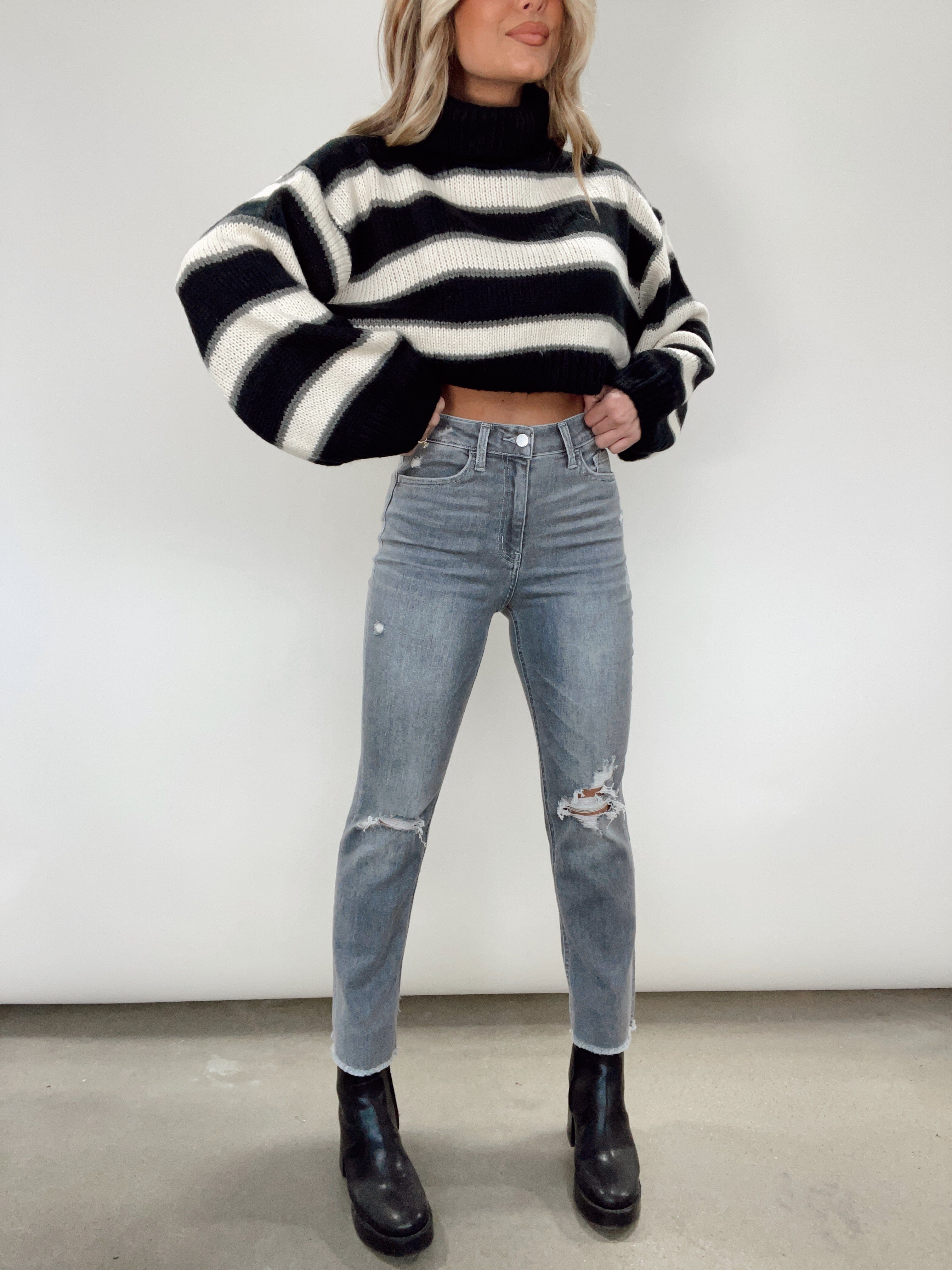Keep it chill in Lane 201's Vervet Grey High Rise Ankle Straight Denim! This jean features a super soft and stretchy denim material, pocket details, a button and zipper closure, distressed details, and a super high rise and straight leg fit. The perfect jean for any occasion this season!