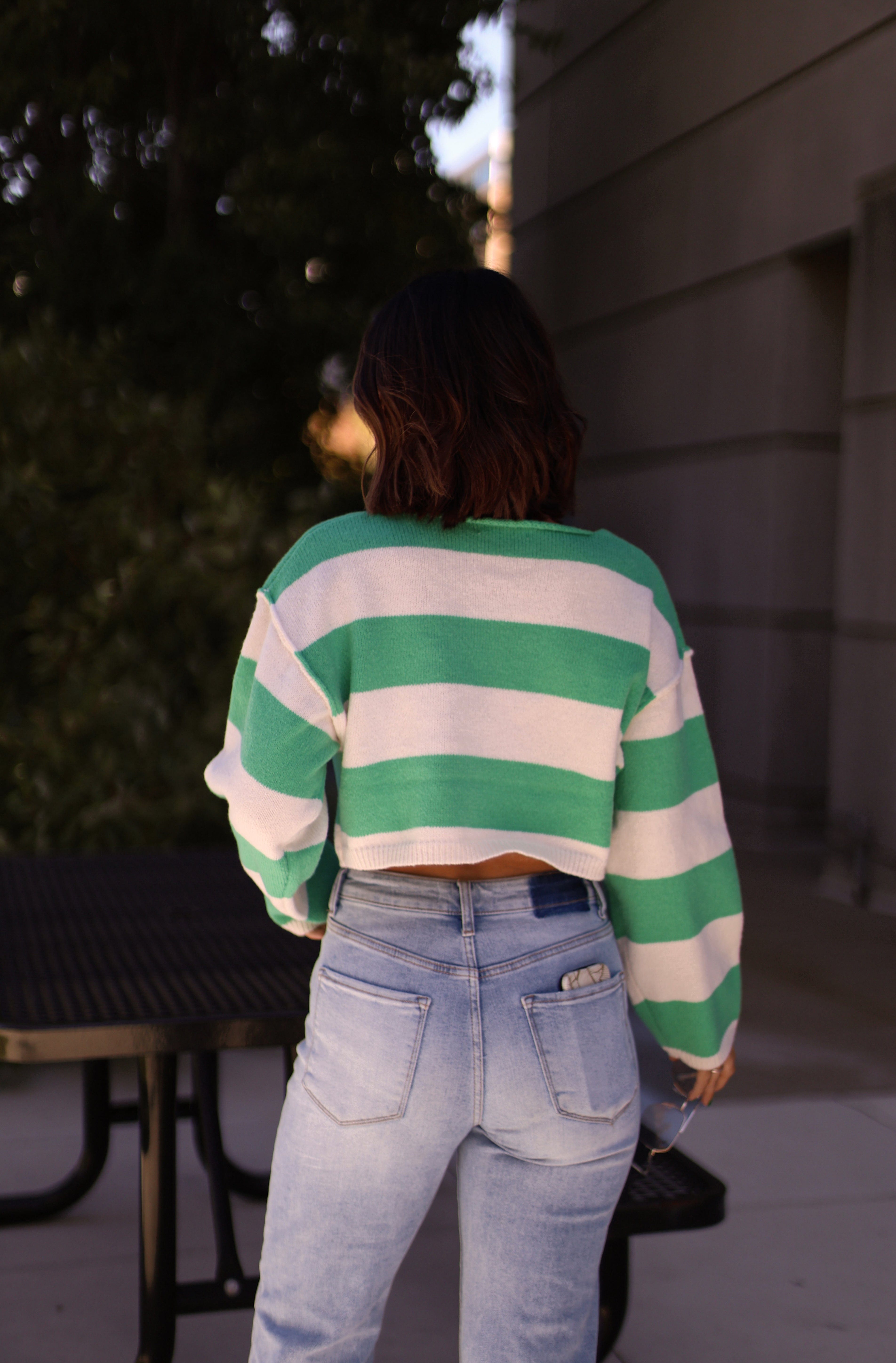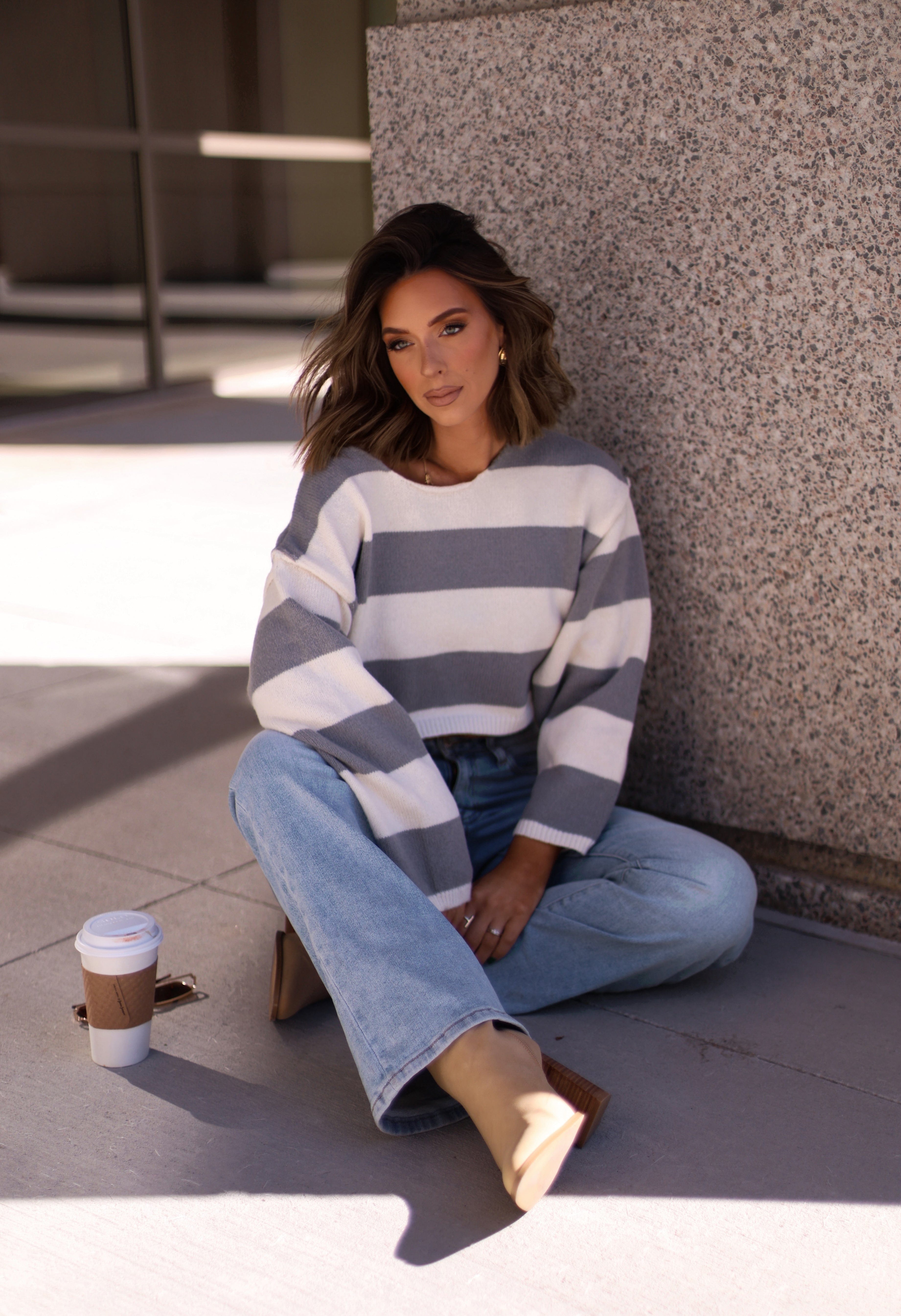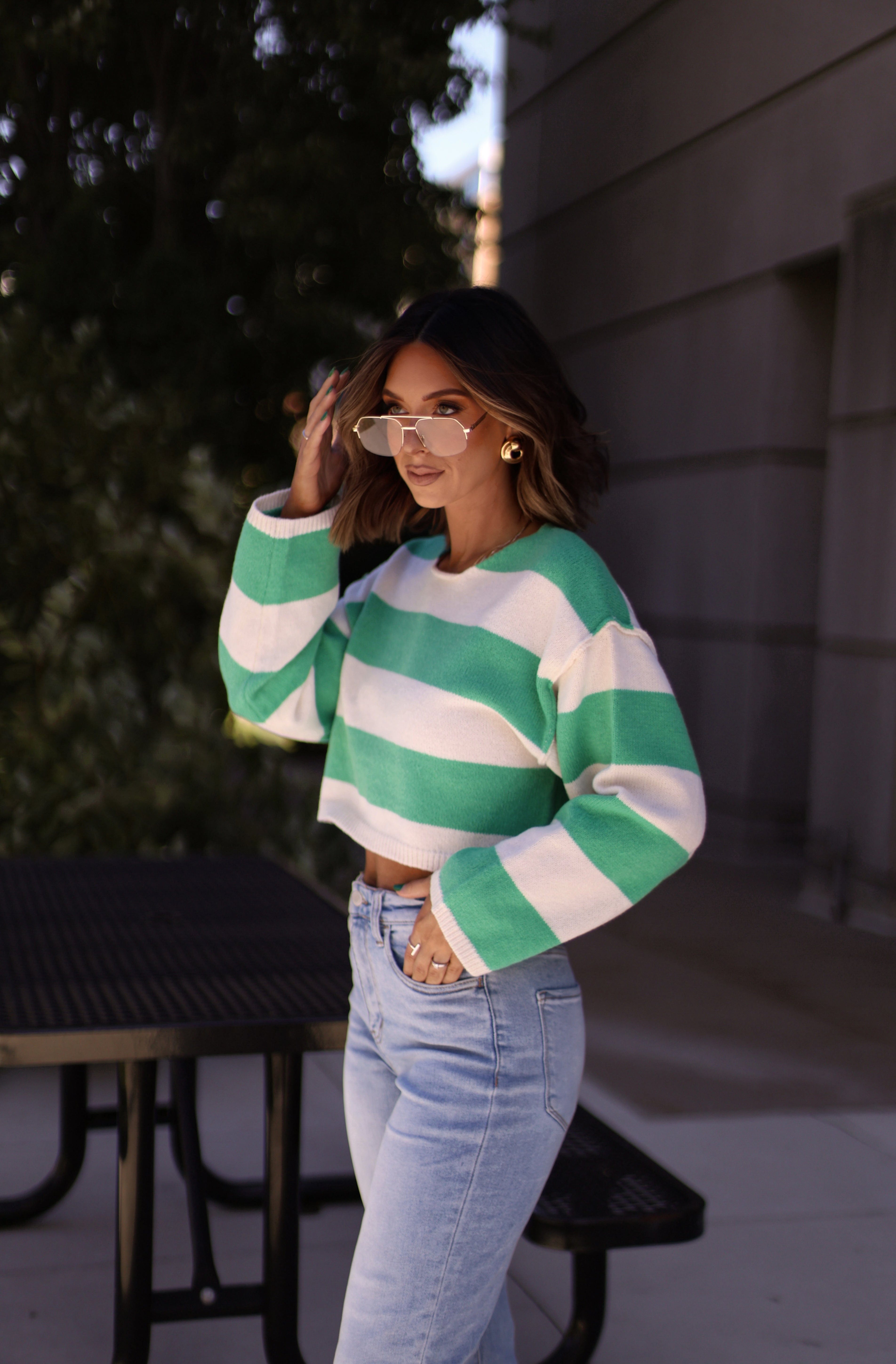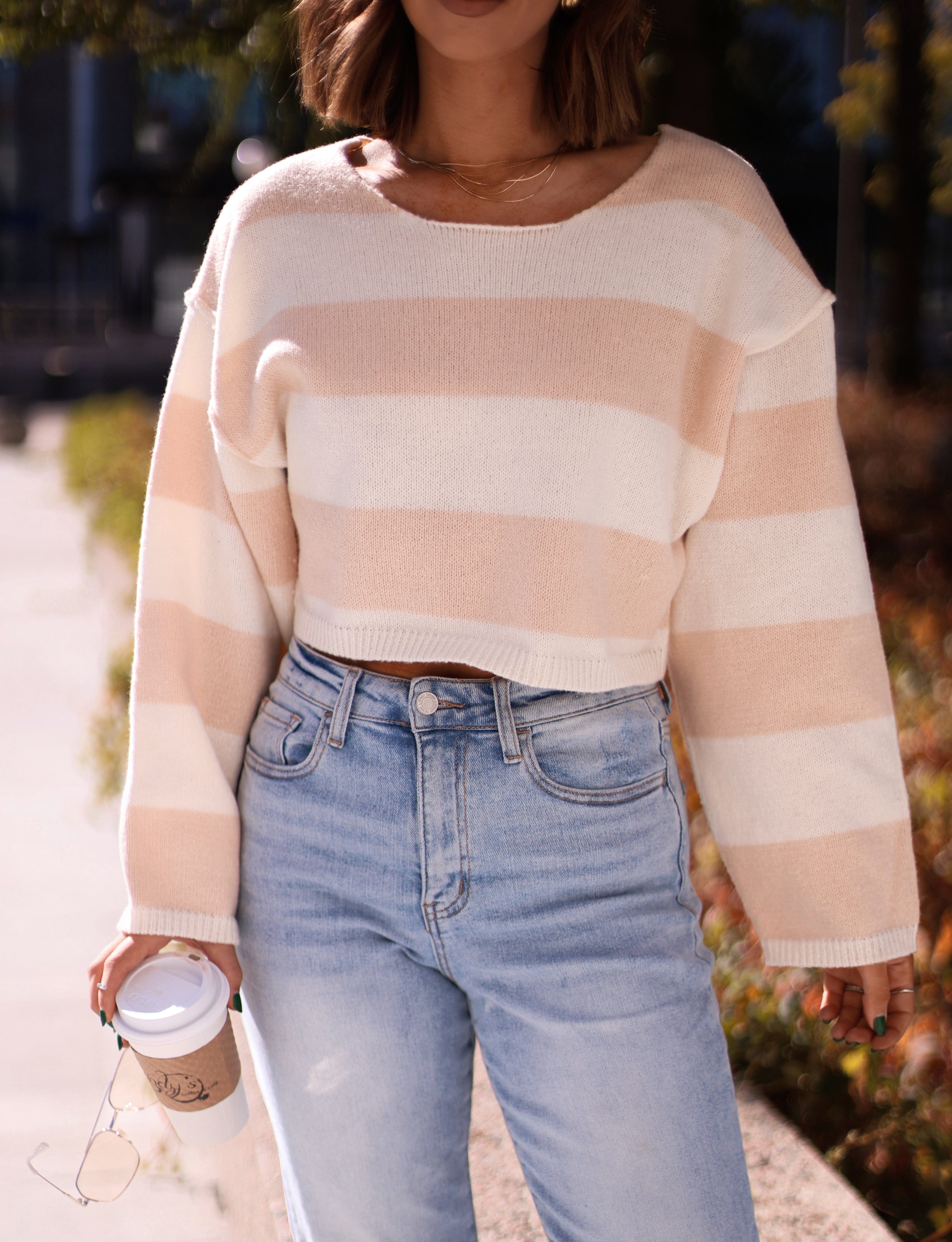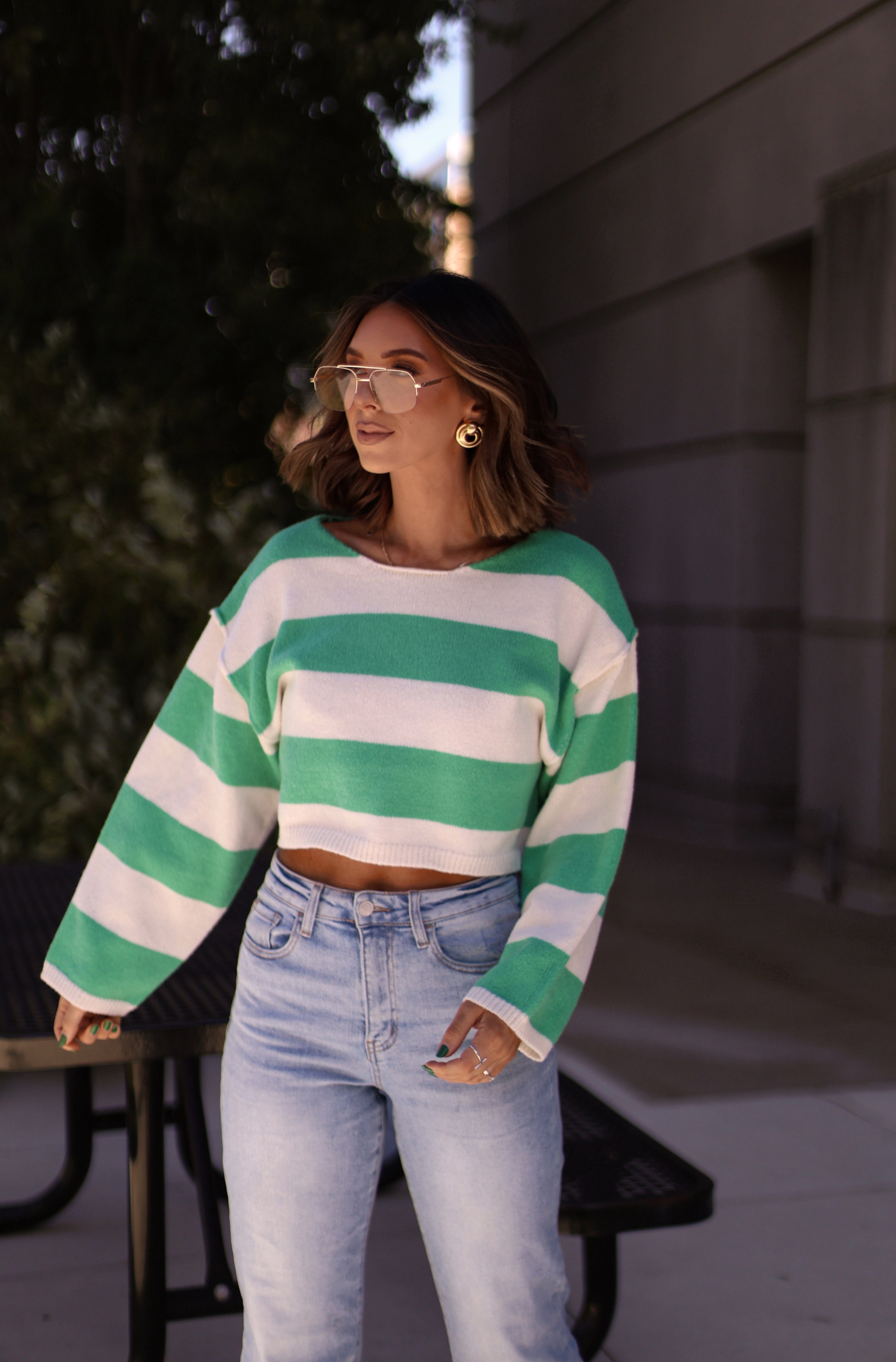 The Second Chance Pullover offers a stylish and versatile addition to your wardrobe. Its striped design and cropped length provide a trendy look, while the round neck and loose fit ensure comfort and ease of movement. Made with high-quality sweater material, this pullover is perfect for any casual or dressy occasion.
