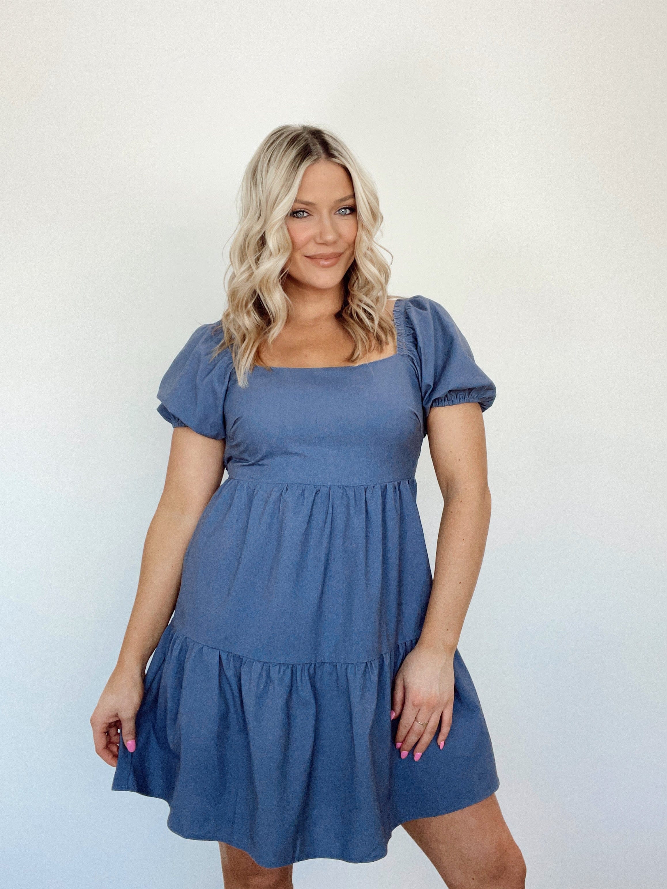 Need something to wear to your next special event? Step into a classic look with the Lane 201 Walking On A Dream Dress. Has an open square back with cinched waist, puff sleeves and tiered bottom. Shown styled with the Everything You Need Necklace and a hat!