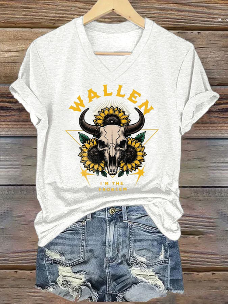 Wallen I'M The Problem Printed V-Neck Short-Sleeved T-Shirt 9549580
