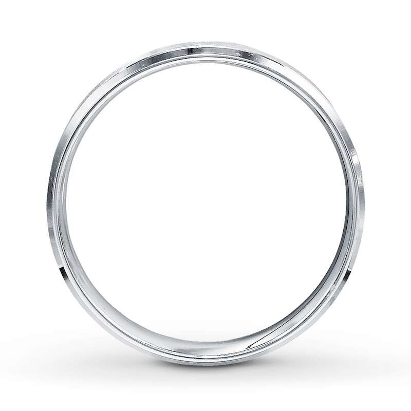 This elegant 8mm wedding band features a brushed finish center and crisp engraved edges for a contemporary look. The ring is crafted in 10K white gold. This wedding band is available in sizes for men or women.