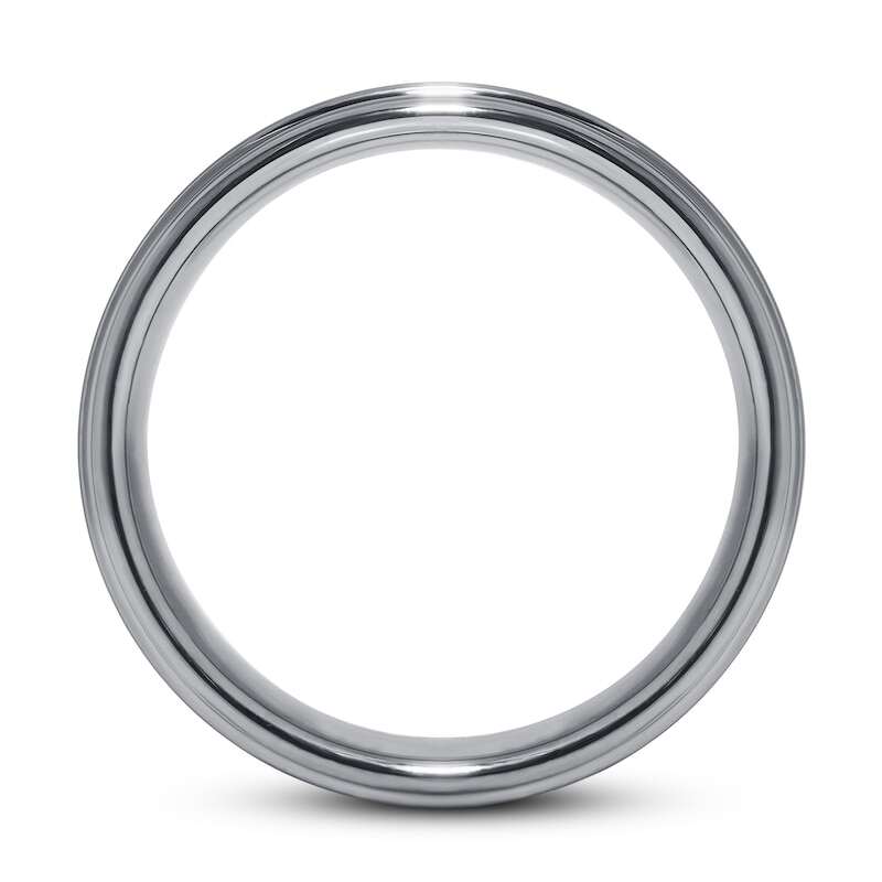 This sleek and timeless wedding band features a simple and classic design. The band measures 6 millimeters and is crafted in tungsten.