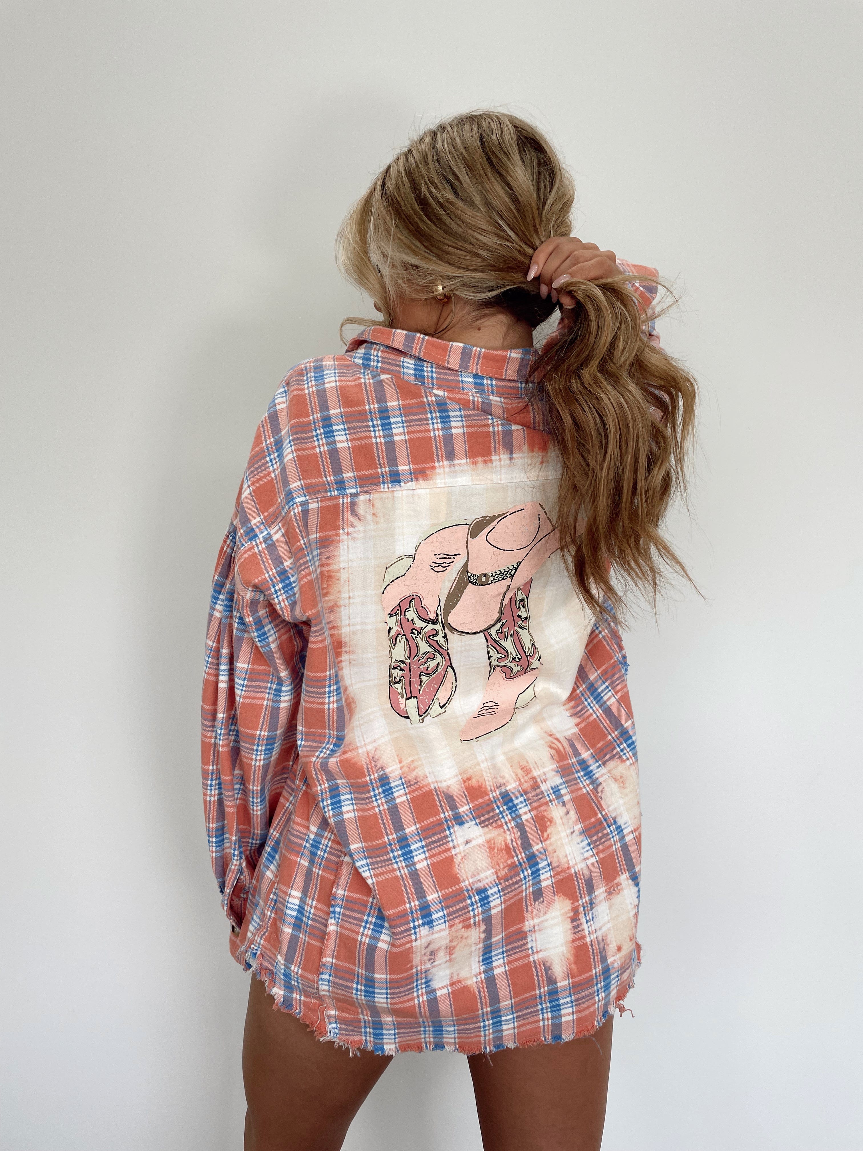 Introducing the Western Heritage Plaid Shirt - the perfect blend of western style, freshness, and charm. Crafted from lightweight fabric with a collared neckline, this button-down shirt features unique graphics along the plaid pattern, creating a stylish, elevated look for this spring and summer. A distressed hemline, a pop of color and a trendy, unique touch. Step out in western luxury with this alluring piece.