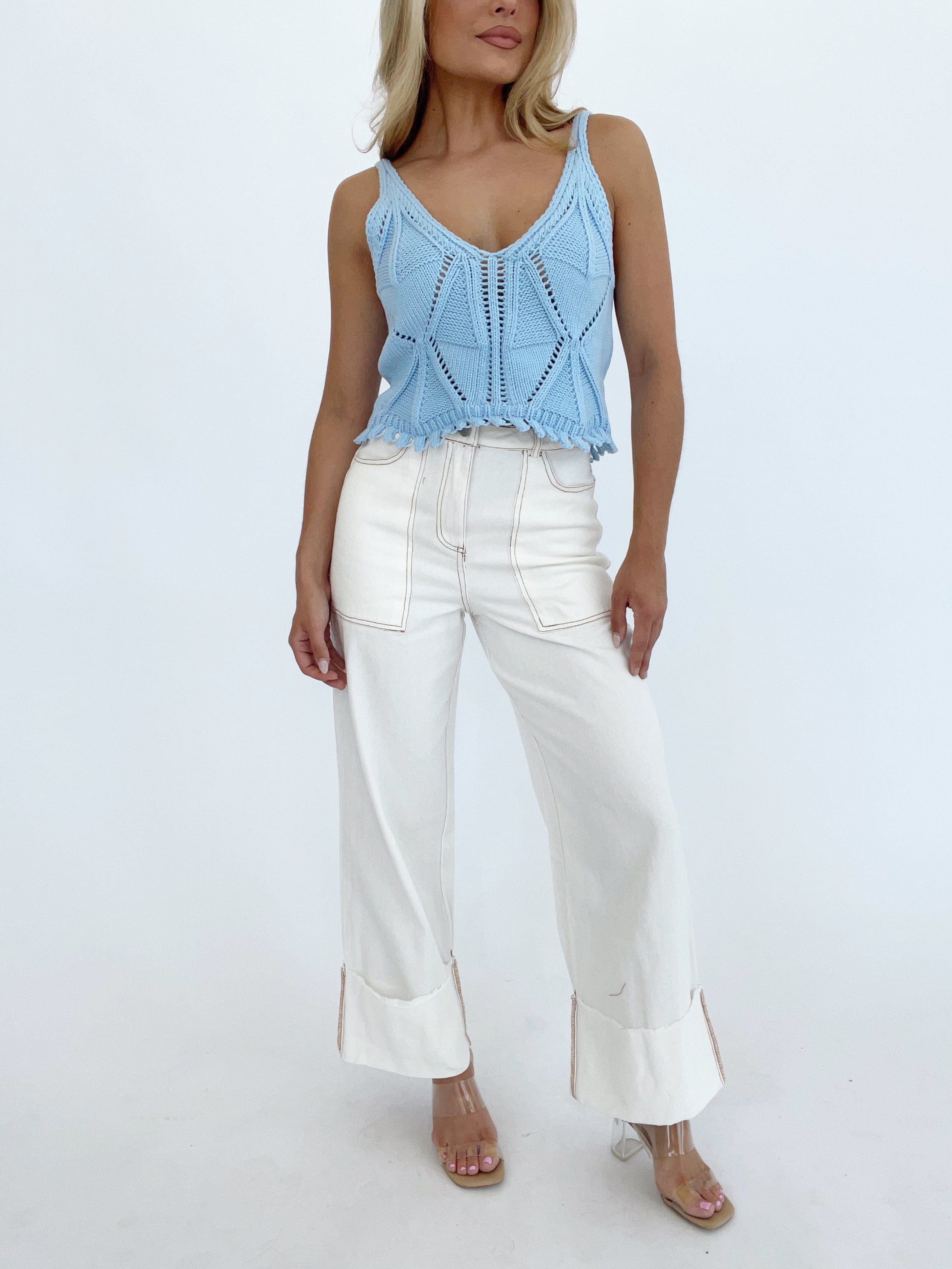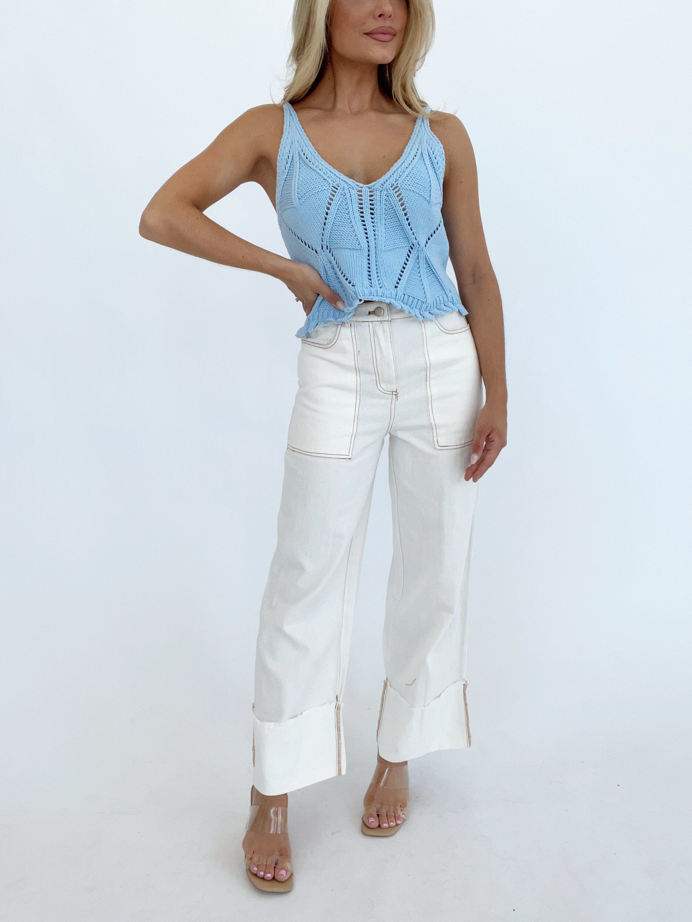 Get the perfect fit with these White Folded Wide Leg Pants. Designed to give you a flattering silhouette, these pants not only elongate your legs but also make you stand out with their unique style. Upgrade your wardrobe with these must-have jeans!