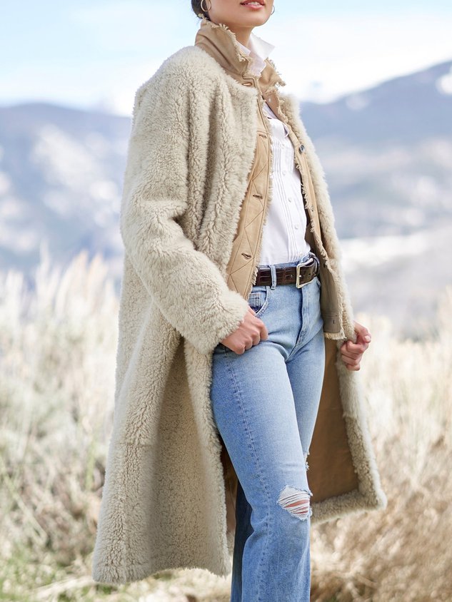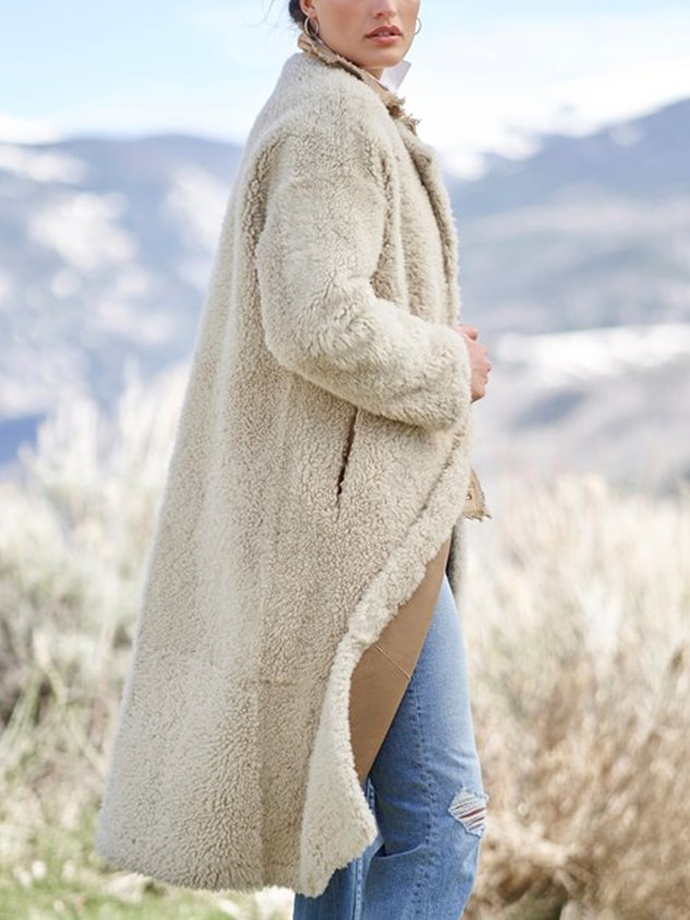 Shawl Collar Suede Plain Teddy Jacket