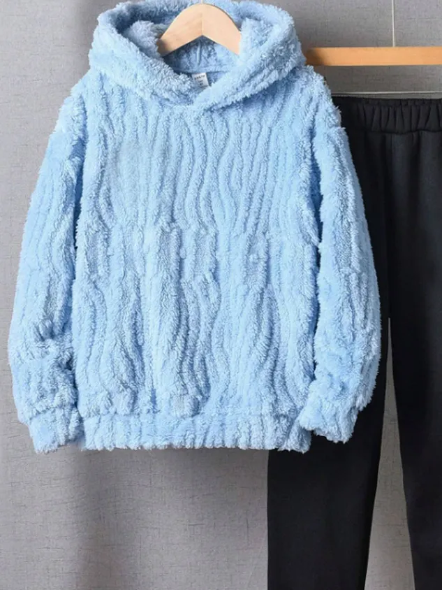 Women Plain Hoodie Long Sleeve Comfy Casual Top With Pants Two-Piece Set