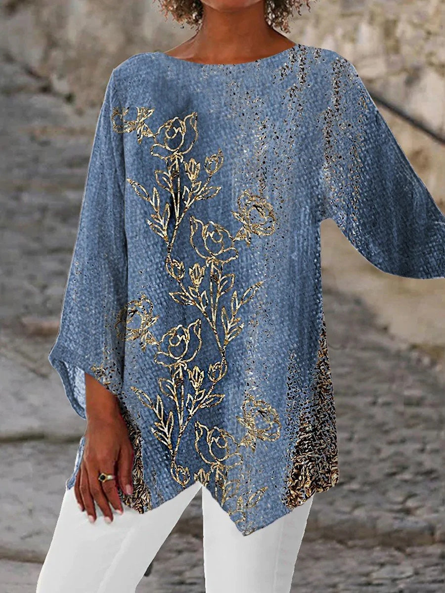 Women 3/4 Sleeve Scoop Neck Printed Colorblock Women Tops 9506160