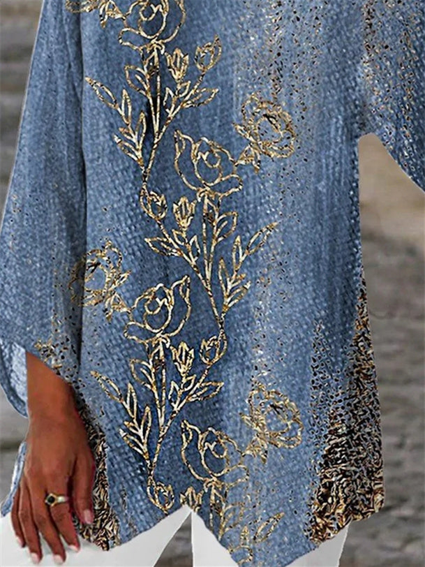 Women 3/4 Sleeve Scoop Neck Printed Colorblock Women Tops