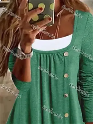 Women's Long Sleeve U-Neck Buttons Top