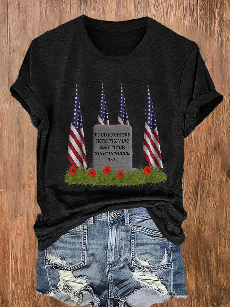 Women'S Bold Soldiers Here Ther Lie May Thier Spirits Never Die T-Shirt