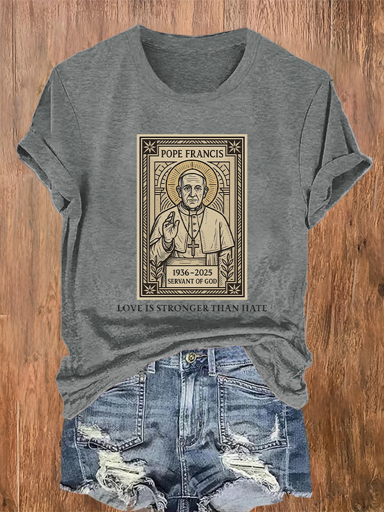 Women's 1936-2025 Servant Of God Love Is Stronger Than Hate Print Short Sleeve Round Neck Cotton T-Shirt