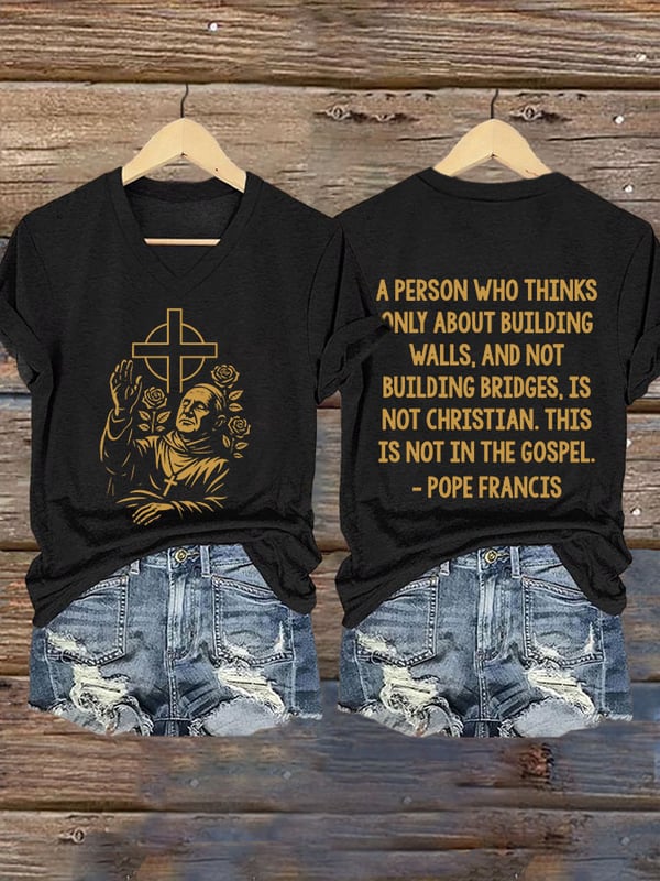 Women's A Person Who Thinks Only About Building Walls Peace Love 1936-2025 Print Short Sleeve Round Neck Cotton T-Shirt 9534741