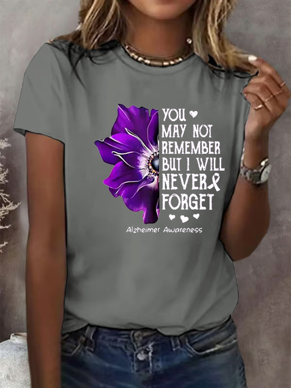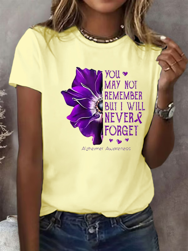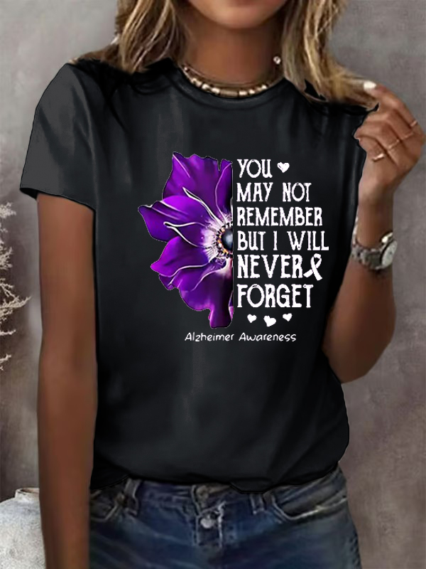 Women'S Alzheimer'S Awareness You May Not Remember But I Will Never Forget Print T-Shirt 9530210
