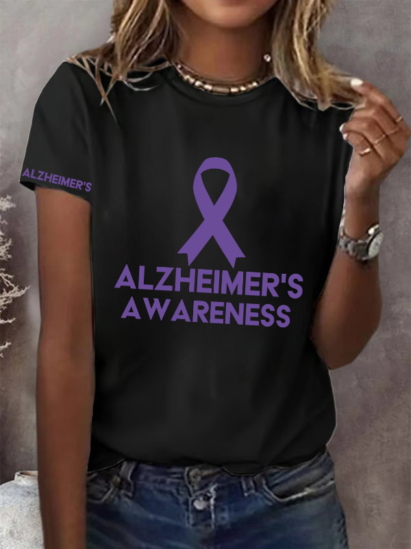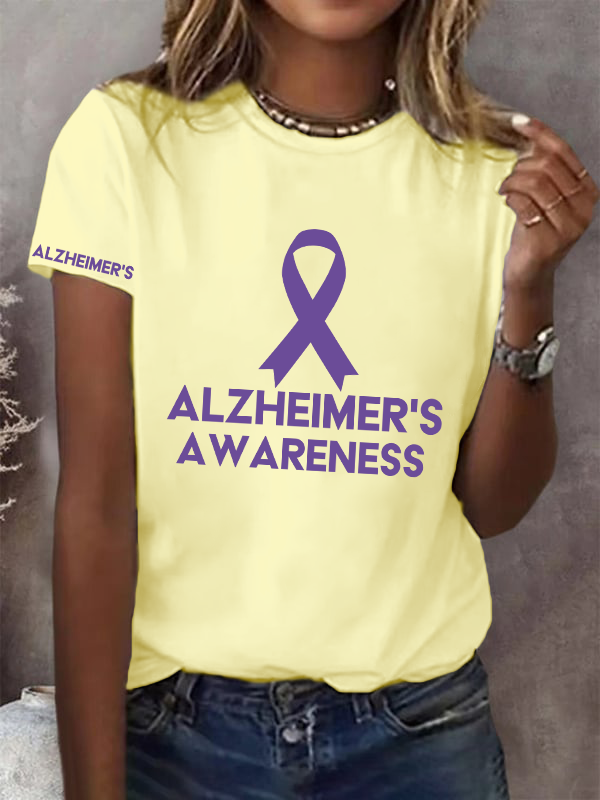 Women'S Alzheimers Awareness Printed Round Collar Casual T-Shirt