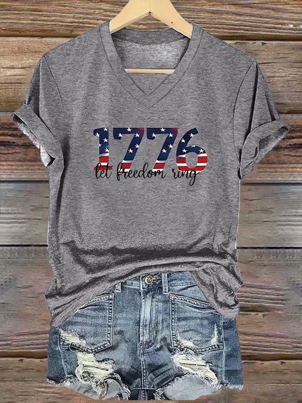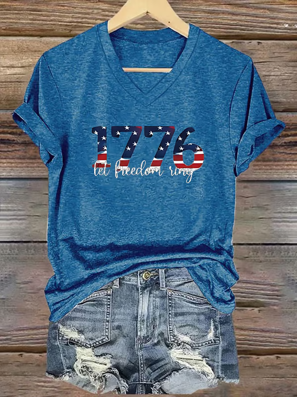 Women's America 1776 Land Of The Free Print Short Sleeve Round Neck Cotton T-Shirt