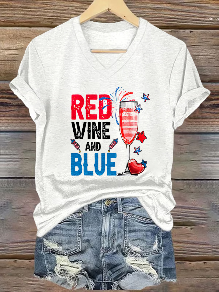 Women's America 1776 Red Wine And Blue Print Short Sleeve Round Neck Cotton T-Shirt 9538710