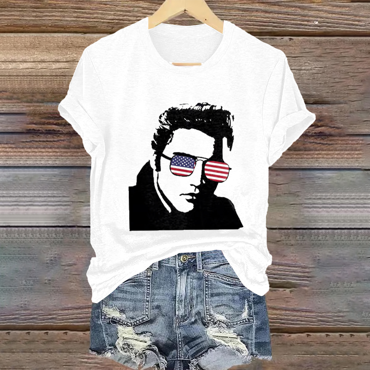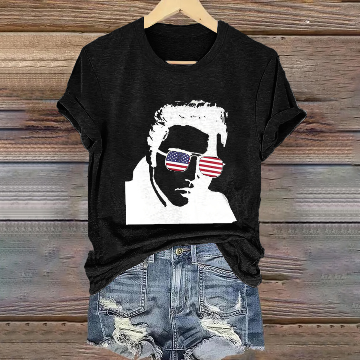 Women's American Characters Print Short Sleeve Round Neck Cotton T-Shirt