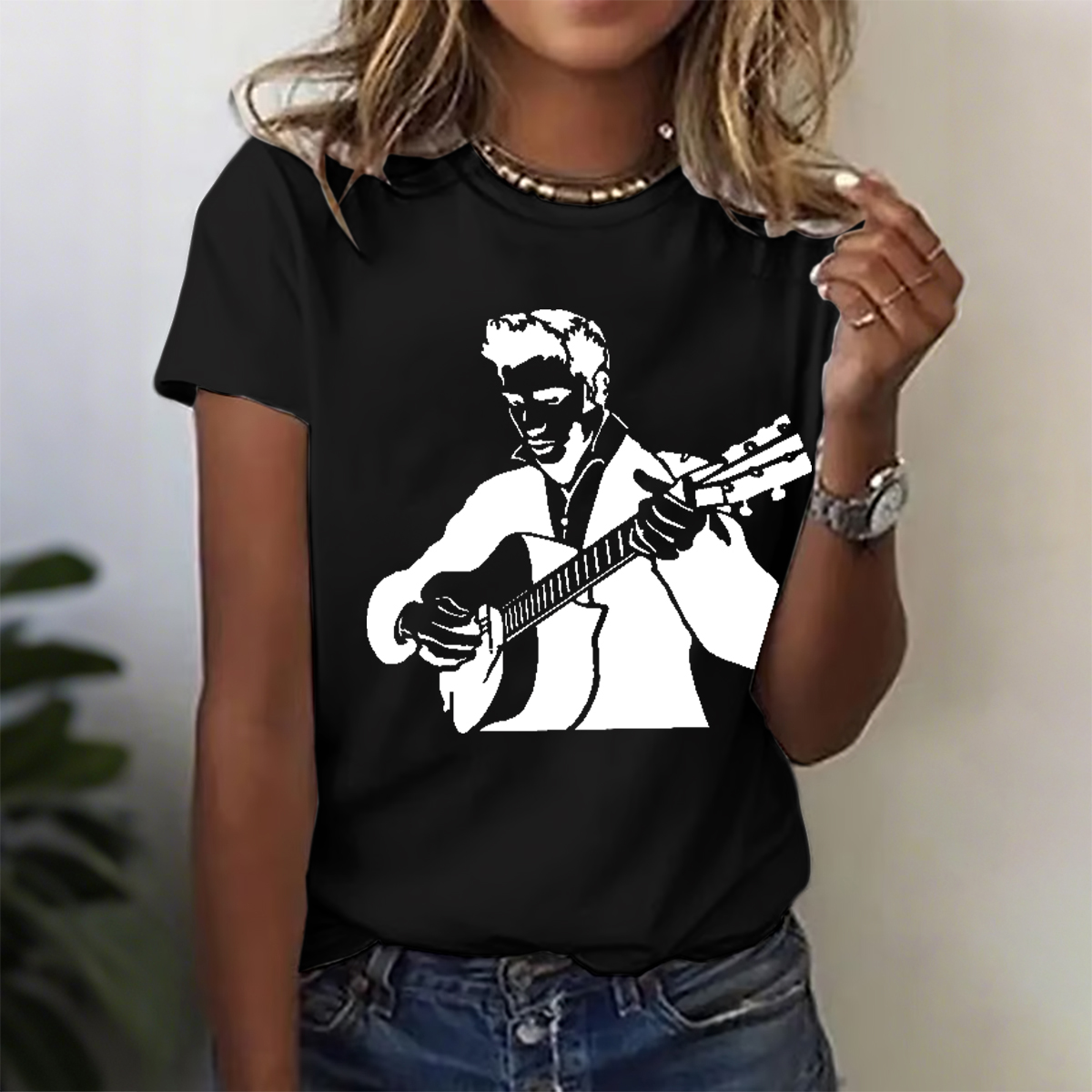 Women's American The King Print Short Sleeve Round Neck Cotton T-Shirt
