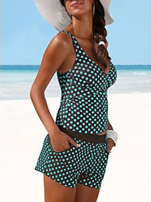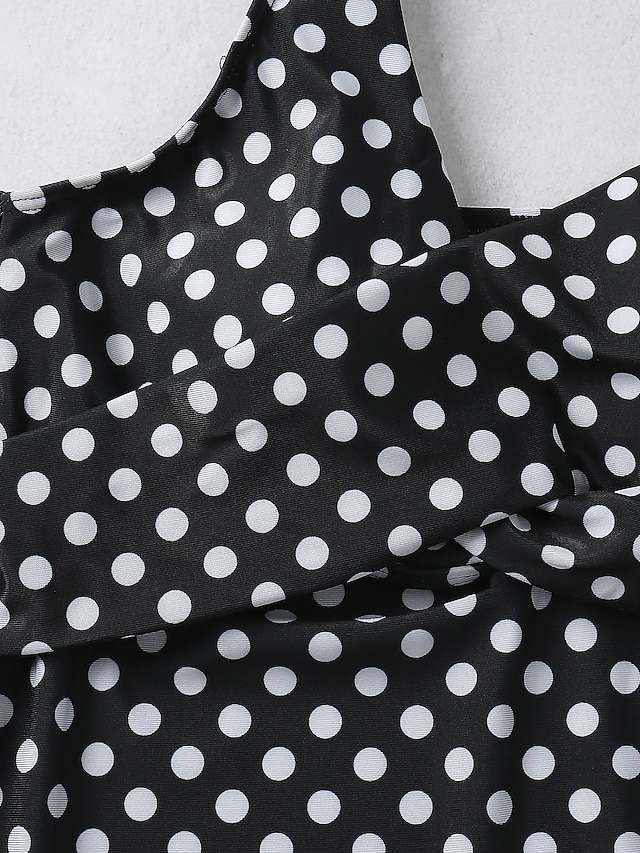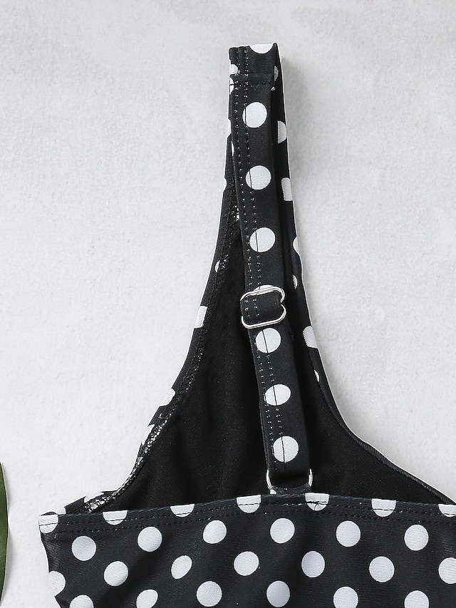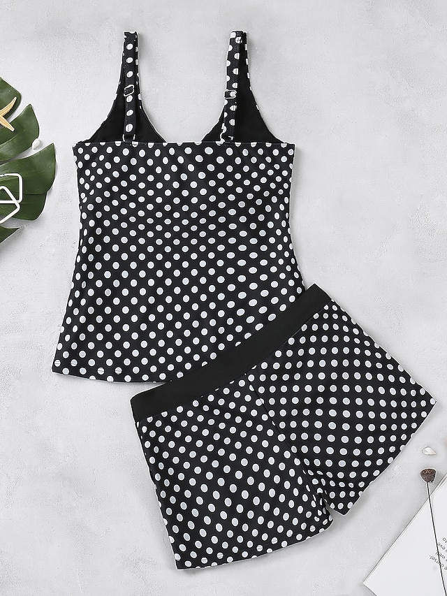 - Comes as a 2-piece polka dot tankini swimsuit set
