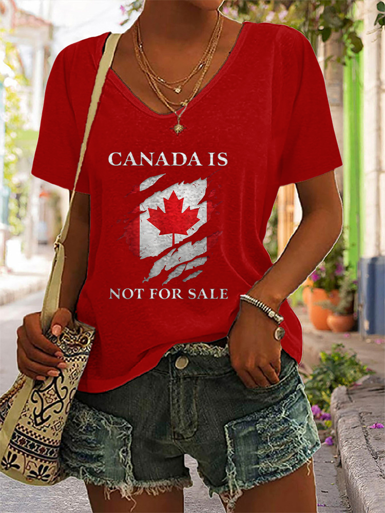Women's Canada Is Not For Sale Short Sleeves V-Neck Pure Cotton T-Shirt 9542030