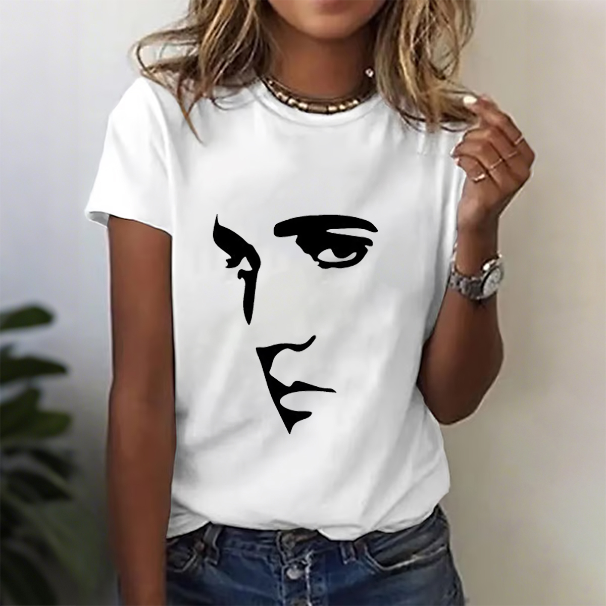 Women's Character Print Short Sleeve Round Neck Cotton T-Shirt 9531562